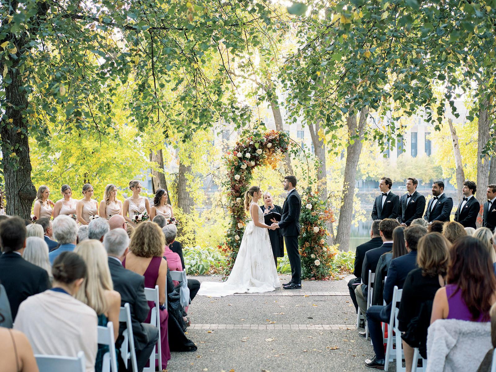 Bridal Attire: MONIQUE L’HUILLIER (@moniquelhuillierbride) from ANNA BÉ BRIDAL (@annabe.minnesota) Catering: D'AMICO HOSPITALITY (@damicohospitality) Florals: BARB ANDERSON, VIKING FLORALS (@vikingfloraldesigns) Groom’s Attire: SUITSUPPLY (@suitsupply) Hair & Makeup: PRIMPED (@primpedmn) Music: GENERATION NOW (@gennowdjs); LORING