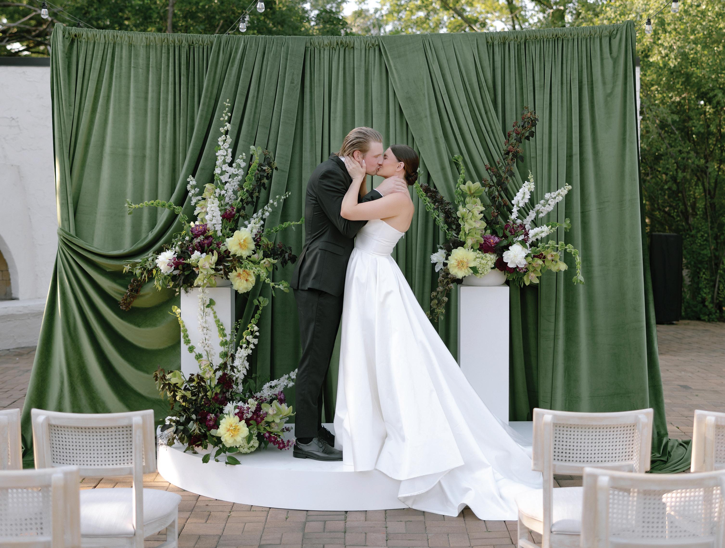 Grace and Jackson’s romance has been 10 years in the making. Although they had known each other since preschool, it was not until high school that they officially met, and romance blossomed at their sophomore year homecoming dance. After three years of dating long-distance during college, the pair moved to Atlanta together, and the rest is history. Inspired by the romance of European summer weddings, they chose American Swedish Institute as their venue for its beautiful architecture and history. The location also holds a special place in the family’s hearts, as the groom’s grandparents are longtime members. Grace and Jackson wanted the design to reflect their values as a couple, aiming for a relaxed celebration where guests could feel present. To support this atmosphere, they chose to forgo a traditional wedding party and instead hosted a more intimate guest list, ensuring an evening full of closeness and warmth. The wedding design emphasized the natural beauty of the venue, featuring a lush green garland draped along the railing leading to the front door and altar. The couple exchanged vows outdoors in front of the institute, and just after they said, “I do,” rain began to fall, prompting a second, equally heartfelt round of vows inside the museum. During cocktail hour, guests were invited to explore the Turnblad Mansion, turning the evening into both an exploration and a celebration. Surrounded by their loved ones, Grace and Jackson spent the night encircled by devotion and joy. — Isabelle Keller