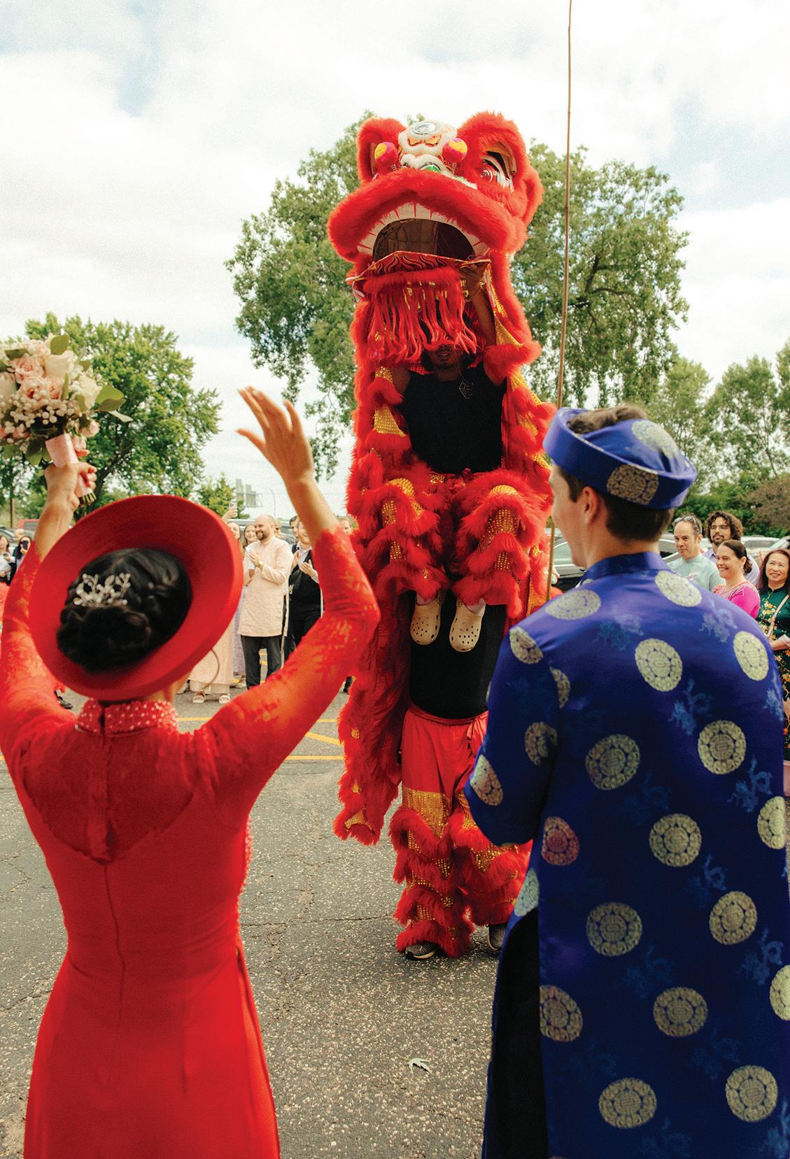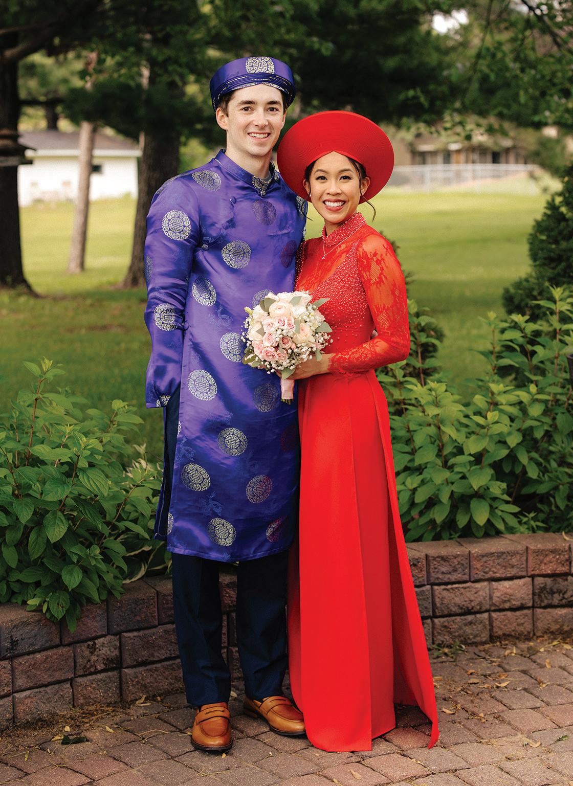 Bridal Attire: CUSTOM from VIETNAM (áo dài); OUR SHOP BRIDAL (wedding gown; @ourshopbridal); CUSTOM SEWING BY HEATHER (alterations; @customsewingbyheather) Bridesmaid Attire: CUSTOM from VIETNAM; AZAZIE (@azaziebridal) Cake & Desserts: DOROTHY ANN BAKERY (@dorothyannbakery); NOTHING BUNDT CAKES (@nothingbundtcakes); BEN & JERRY’S (@benandjerrys) Catering: THANH LUONG VEGETARIAN (@thanhluongmn); FORK AND FLAIR (@forkandflairmn) Favors: ETSY (@etsy) Florals: MINNEAPOLIS FARMERS MARKET (@mlpsfarmmarket) Groom & Groomsmen Attire: KNIGHTS CHAMBER CLOTHIERS (@knights_chamber_clothiers) Hair & Makeup: BRITTANY KELLY (hair; @hair.by.bk); LHN BEAUTY (makeup; @lhnbeauty Music: ZACH with MIDWEST SOUNDS (@midwestsoundsdj) Photography: CARLY MAC PHOTOGRAPHY (@carlymacphoto) Rings: SHANE CO (rings; @shanecompany) Stationery & Signage: TRULY ENGAGING (@truly.engaging) Venue: CHUA PHAT AN (Vietnamese Buddhist Association); ABELLA WEDDINGS & EVENTS (@abellaeventsmn)