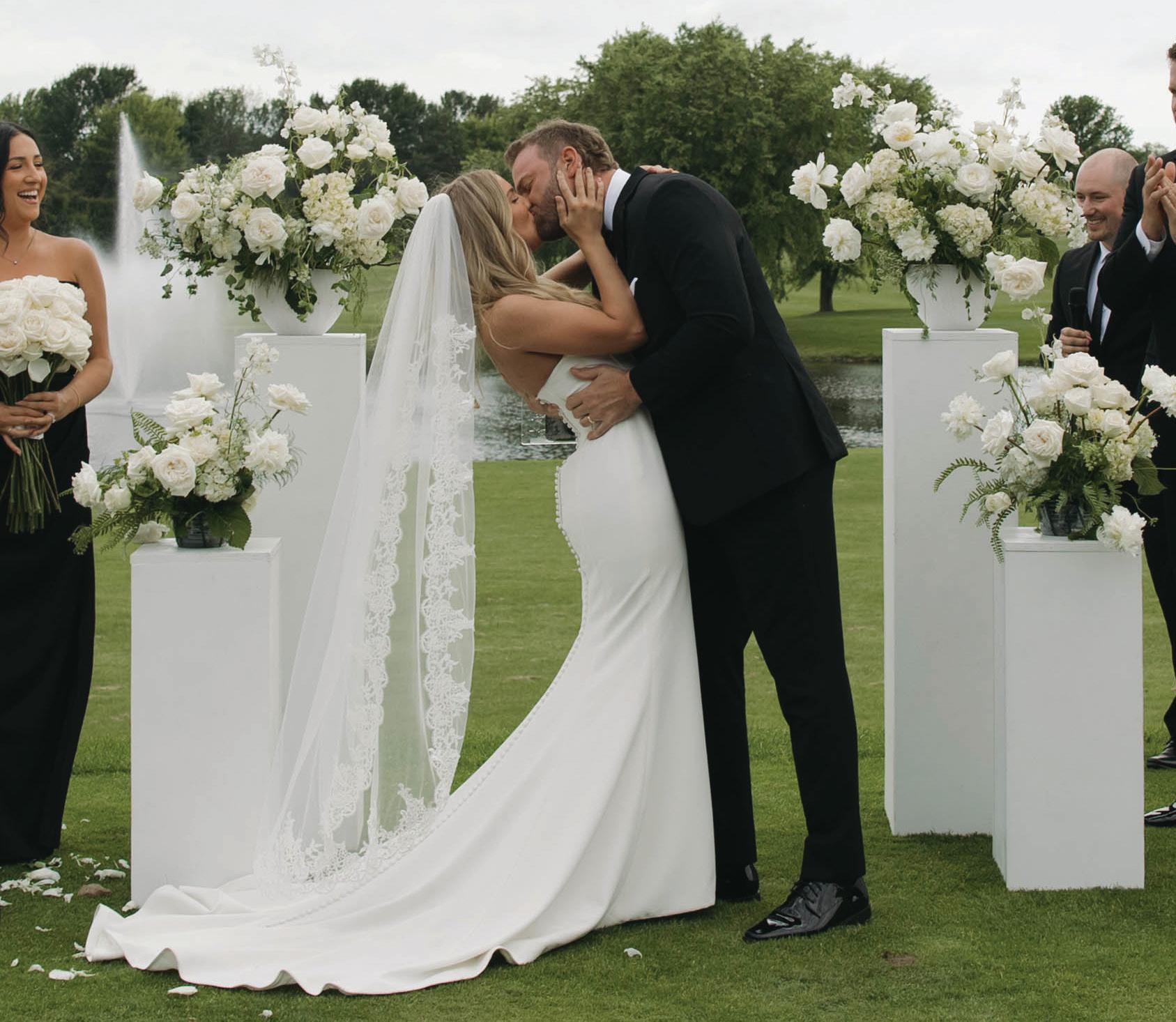 Bridal Attire: CHE BELLA BOUTIQUE (@chebellaboutique) Event Design & Florals: HAUTE HOUSE STUDIO (@hautehousestudio) Groom & Groomsmen Attire: MILBERN CLOTHING CO. (@milbernwedding) Photography: JENNIFER