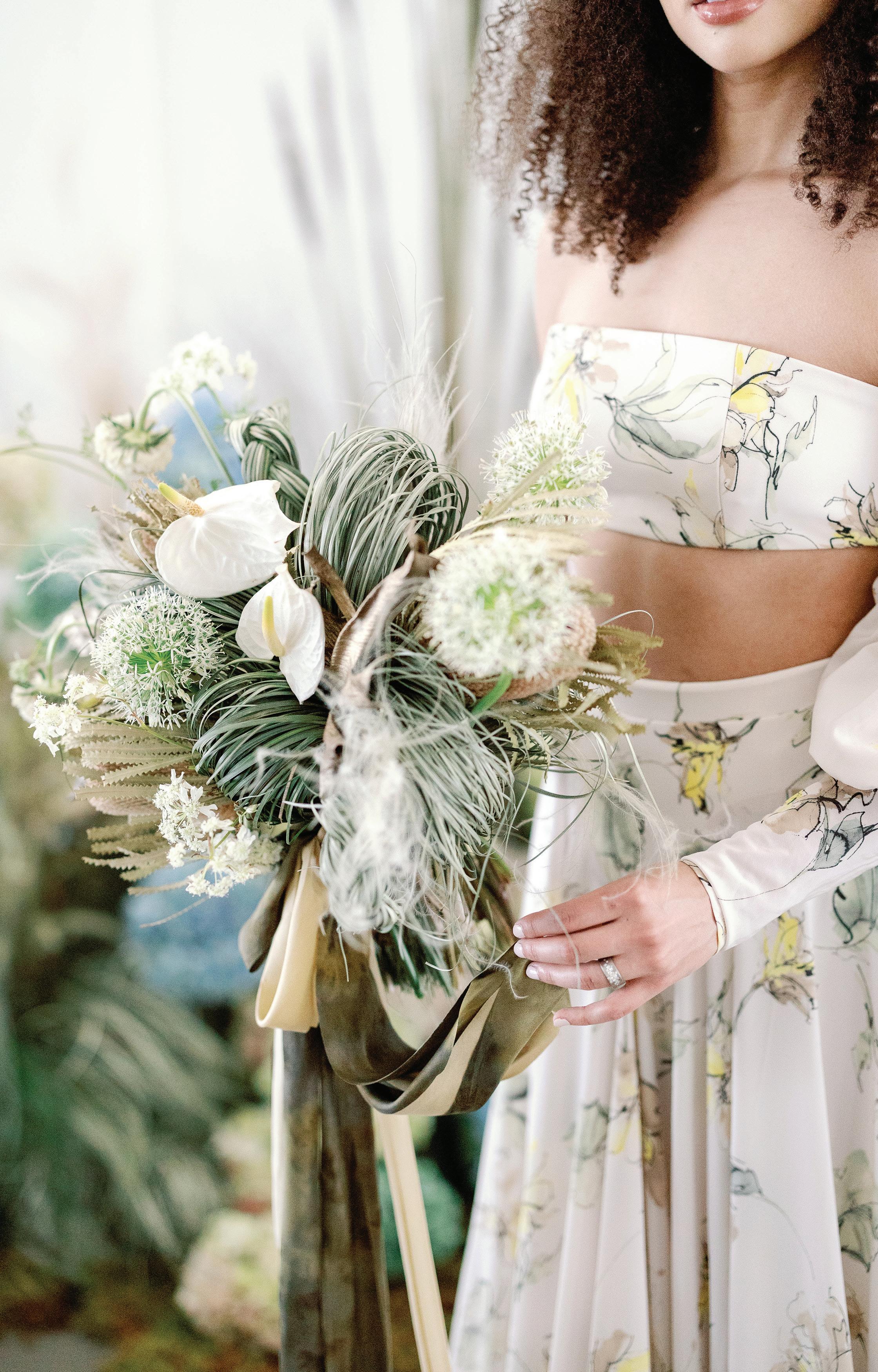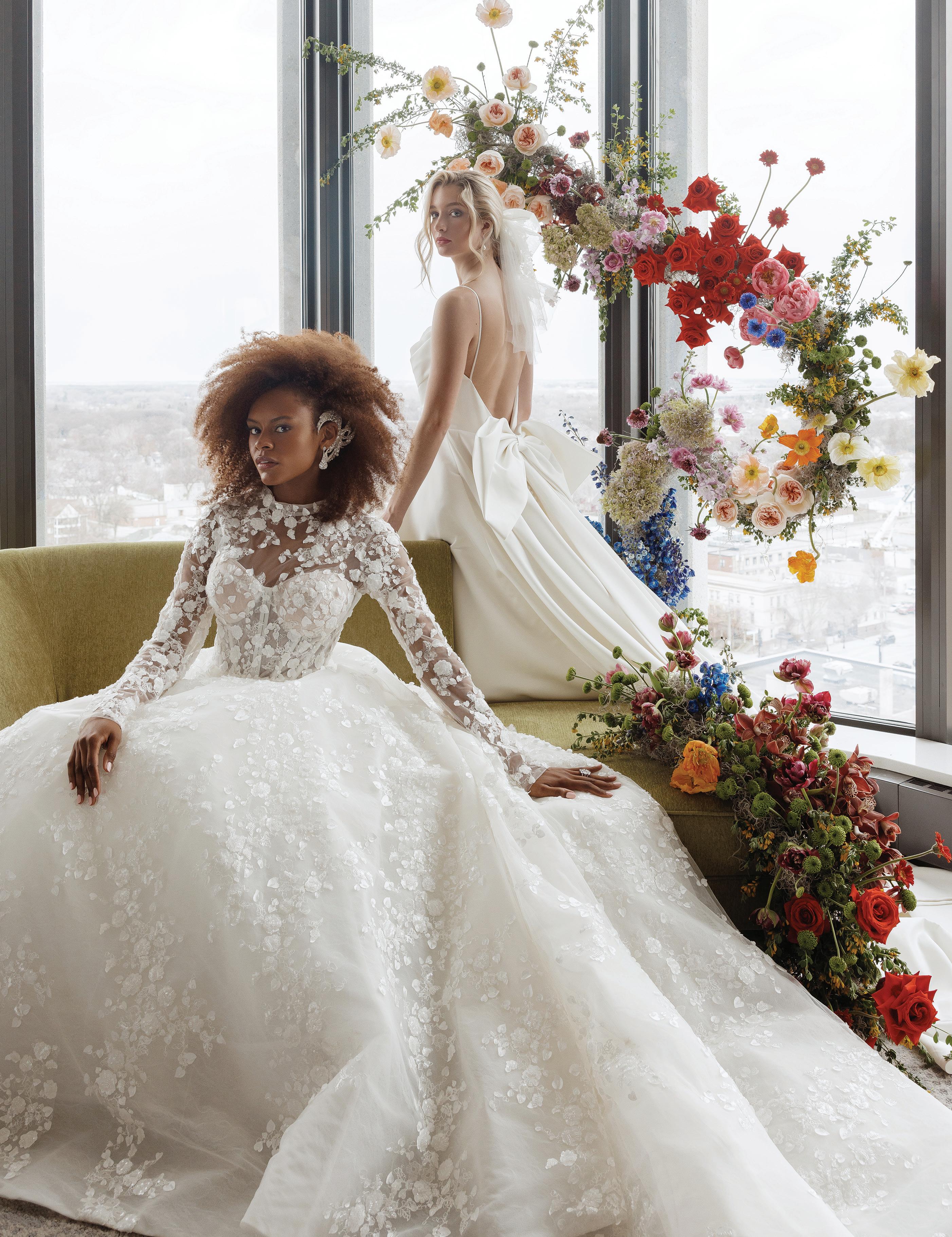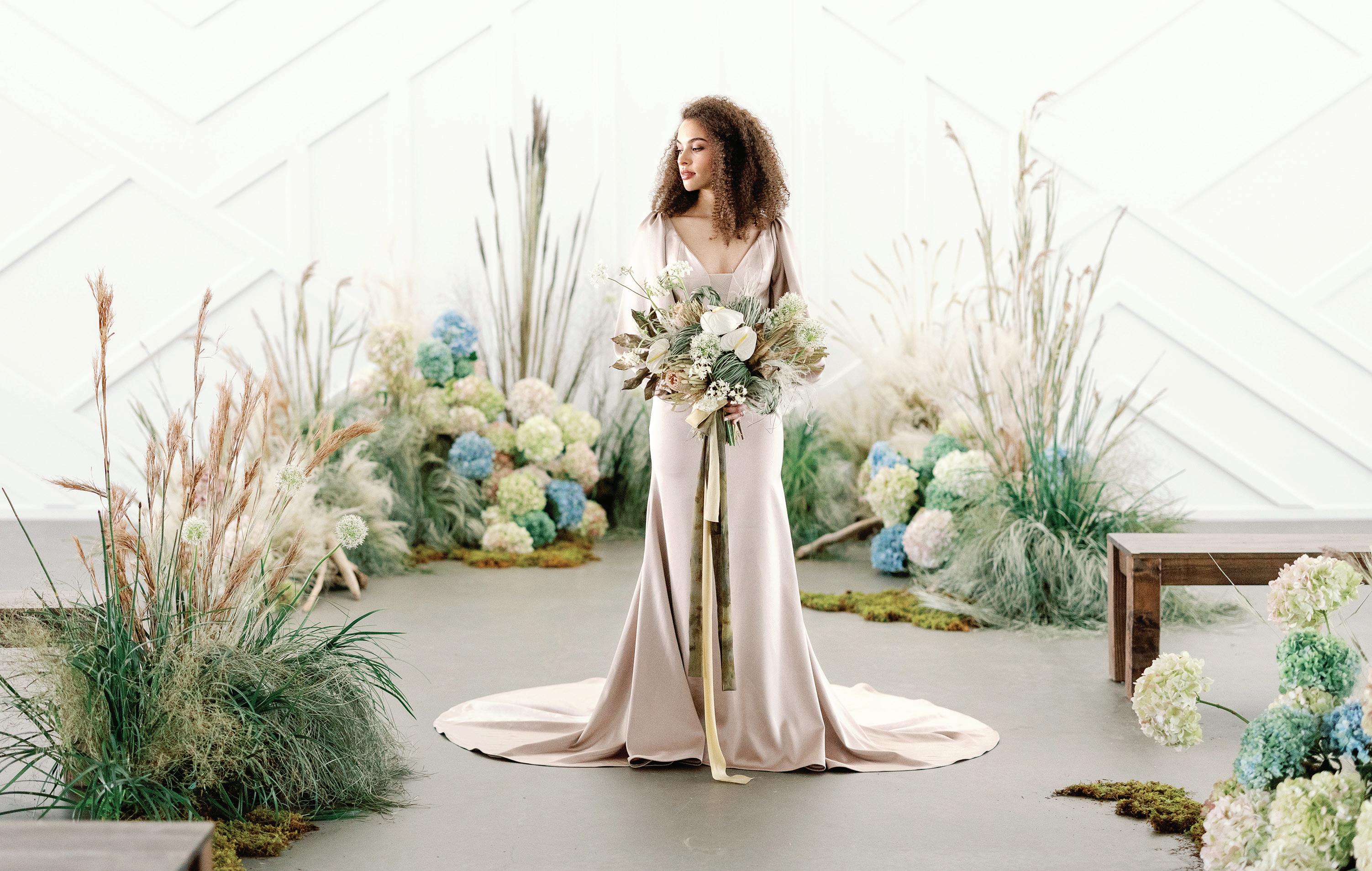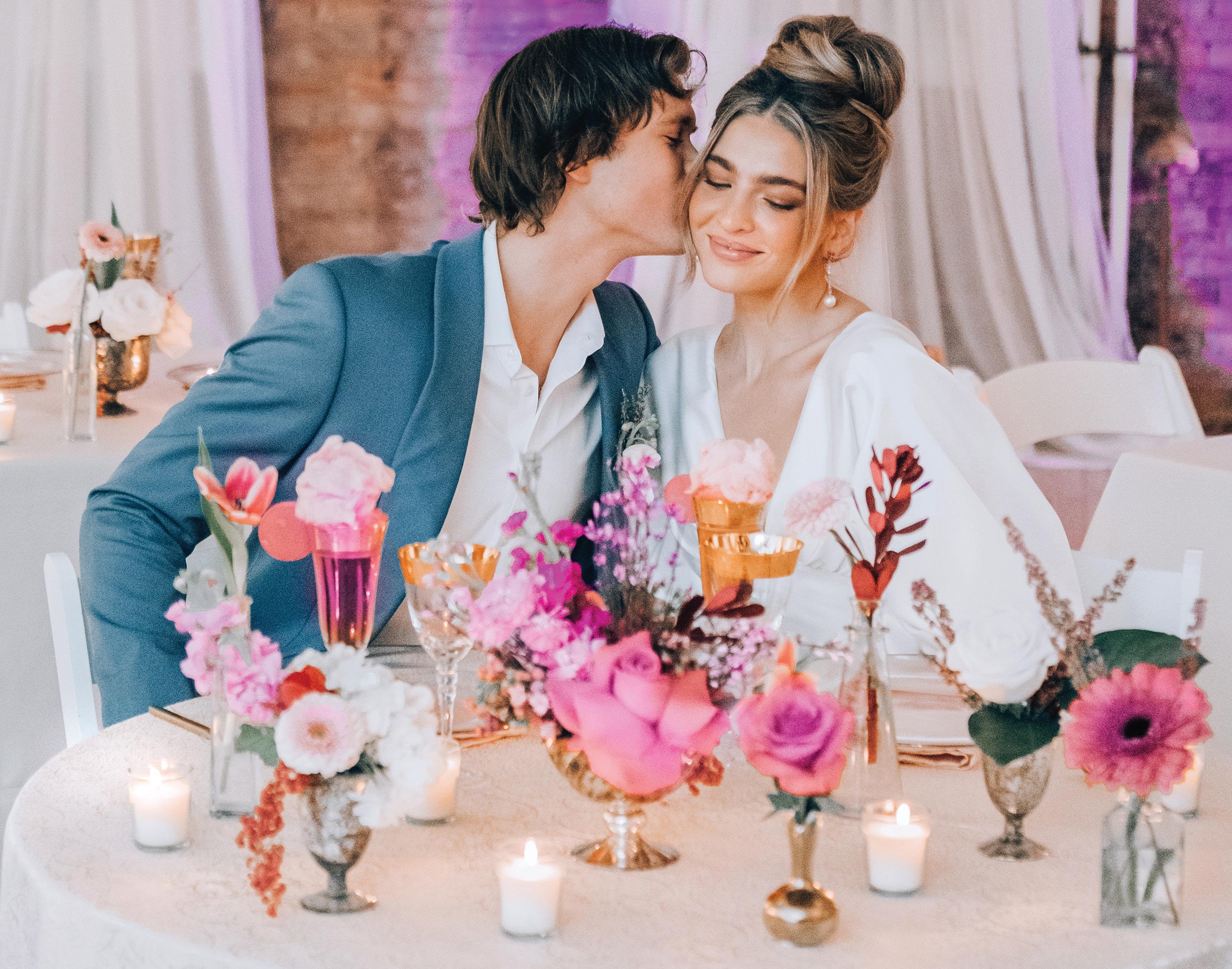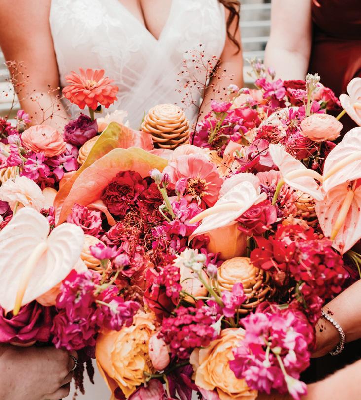 CO NGRATS! We’re so glad you’re joining us here to find your inspiration in these vibrant and lively pages. This is truly an incredible time to be engaged, with so many different wedding day options awaiting you. Bold and bright, unconventional and whimsical, or classic and chic—this issue is brimming with it all. And lucky for you, the old standard of seasonality is no longer applicable—all that matters is what you want!