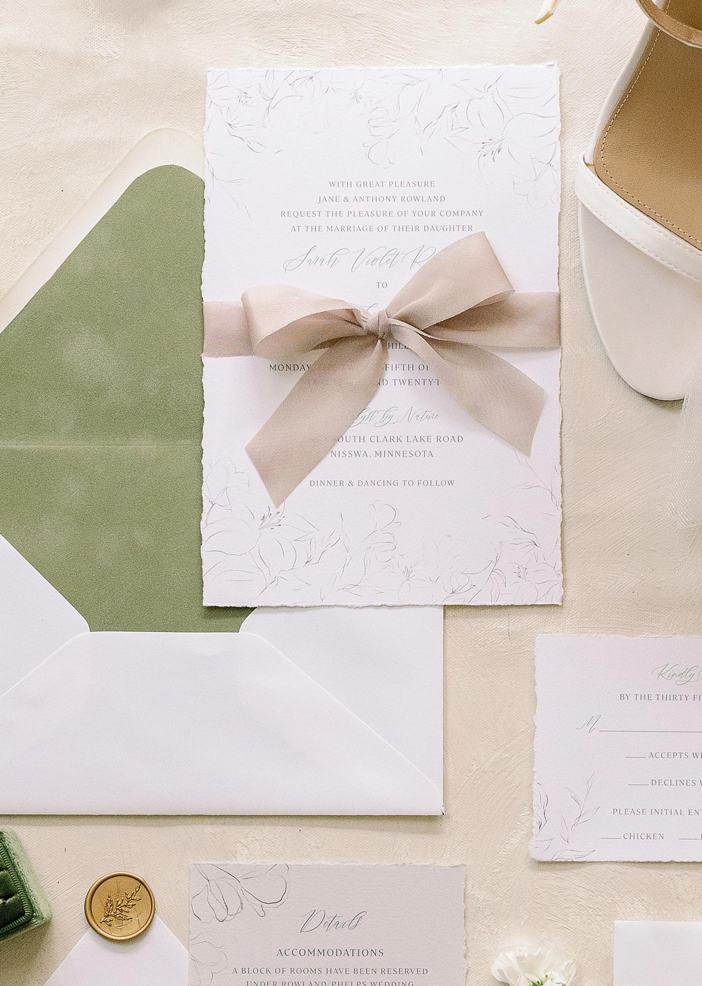 designer: STELLA YORK (@MissStellaYork) Bride’s accessories: RAFFINE BRIDAL & FORMAL WEAR (@RaffineBridal) Bridesmaids’ attire: AZAZIE (@azazieofficial); REVELRY (@shoprevelry) Cake: BURNETT CUSTOM CAKES (burnettcustomcakes.com) Caterer: FORK & FLAIR (@forkandflairmn) Desserts: CRUMBL COOKIES (@crumblcookies) Favors: HOMEMADE COCOA BOMBS