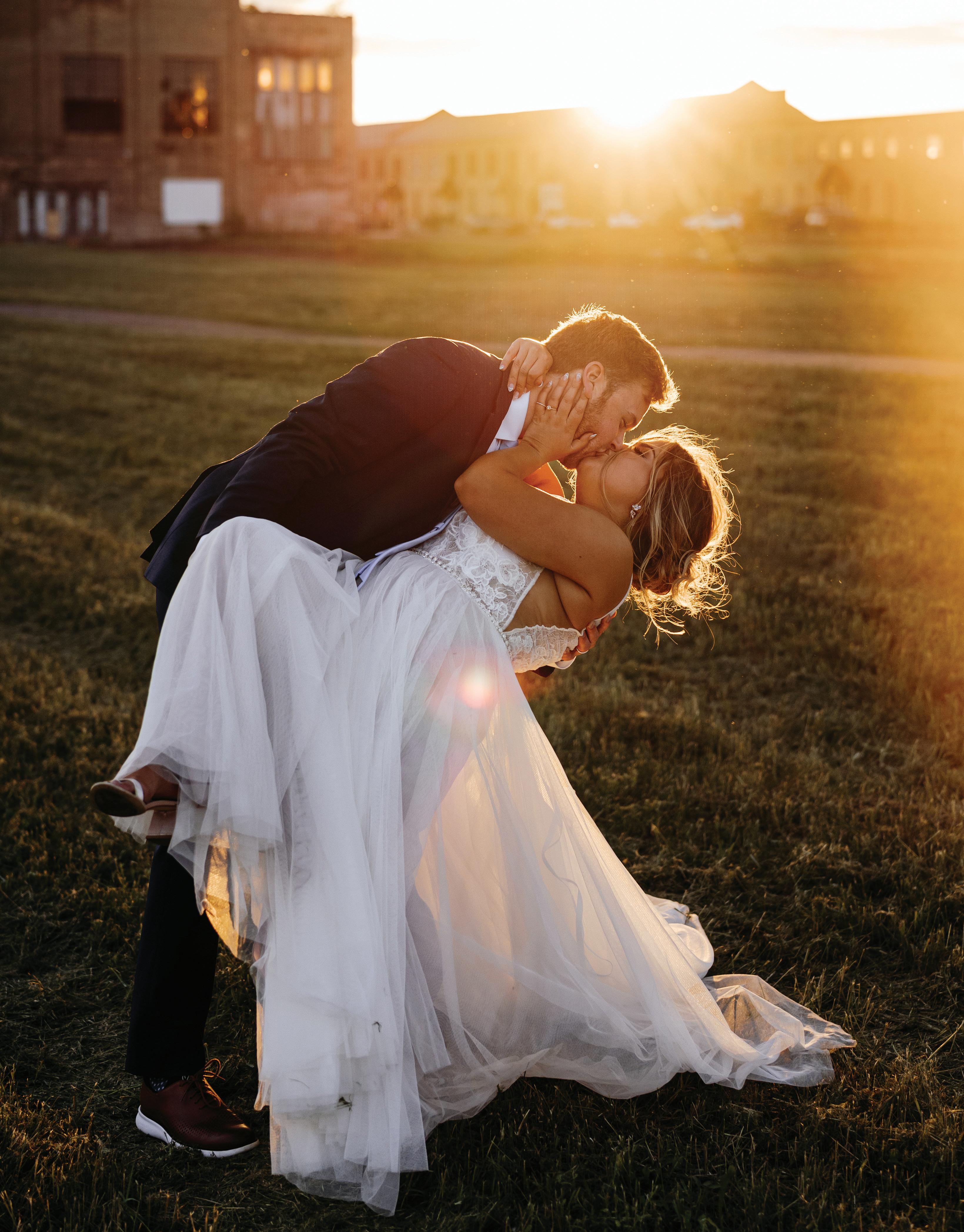 From the moment Jake Watzka heard Madison Schultz laugh in a statistics class at Winona State, he wanted to know more about her. He didn’t get the chance for two years, when she boldly approached him while he was on duty as a bouncer; though he turned down her request to join her later, she persisted via Instagram. “One thing turned into another,” Madison recalls, “and he asked ‘What's your major? ... and your number?’ ” Their wedding day fell three days short of the four-year anniversary of their first date, and despite the weather, “our pictures taken in the rain ended up being some of the most breathtaking,” Madison says. Seeking a warm, cozy atmosphere, the couple found Earl & Wilson Event Center, with its chandeliers and exposed brick, suited them perfectly. Special moments abounded throughout the day. The ceremony was officiated by a dear family friend who had seen Madison’s mom through a 10-year battle with cancer. “Sueann is the person who comes to mind when we think of love lived out loud,” Madison says. To celebrate her mom, Madison arranged a special mother-daughter dance, for all the “sleepless nights [she spent] helping to make my dream wedding become a reality.” *
