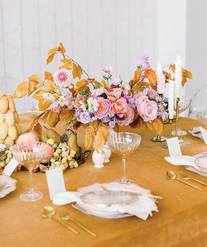 An unexpected vibrant design inspires two lavish autumnal spreads by local caterers