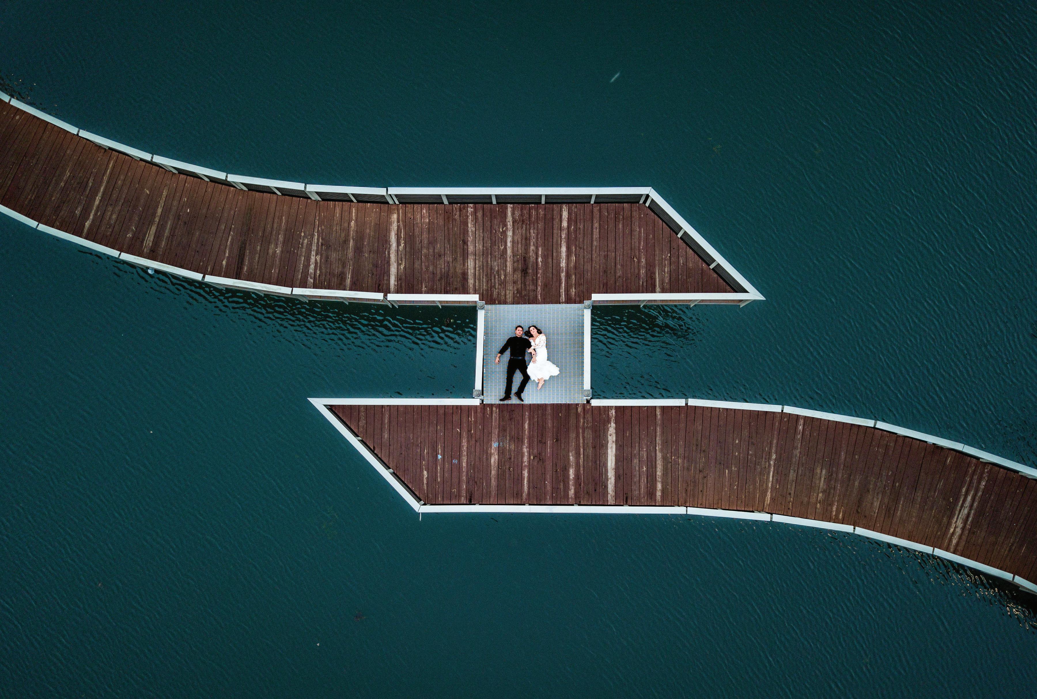 Angela Bianchi-Rossi and Alex Walz’s romance was starting just as the school year at Winona State was ending in 2018, but the couple didn’t let time or distance deter them. They had been together just over three years when Alex dropped to bended knee at the end of the dock at Angela’s family’s cabin on July Fourth weekend. Their wedding day dawned rainy and cold, but just as the ceremony was starting, the sun broke through, warming everyone’s spirits. Family helped make the memories even sweeter: Angela’s godfather was the officiant, her grandfather gave a blessing in Italian at mealtime and Alex’s mother was their wedding planner. A favorite moment for Angela was the ring warming, in which the close friends and family members passed around the couple’s rings, each taking a moment to offer a blessing for the newlyweds. Gusty winds took their toll on the arbor, but that didn’t diminish the breathtaking florals. Later, the arbor was fastened above the dance floor, adding a magical touch, along with hoops of greenery and fabulous floral centerpieces.