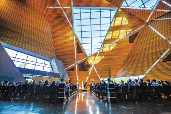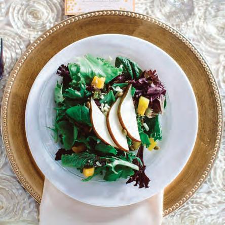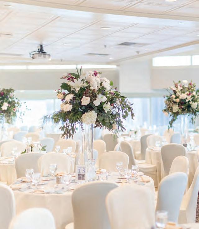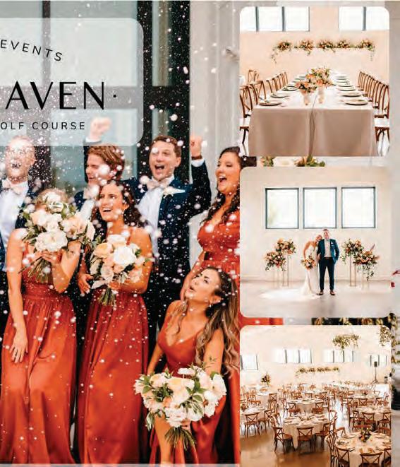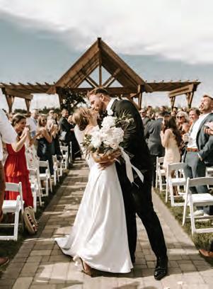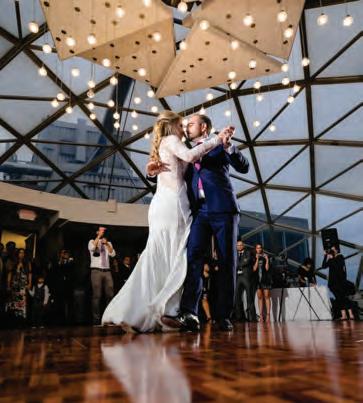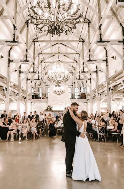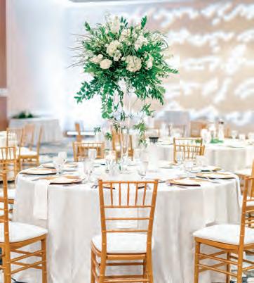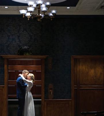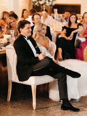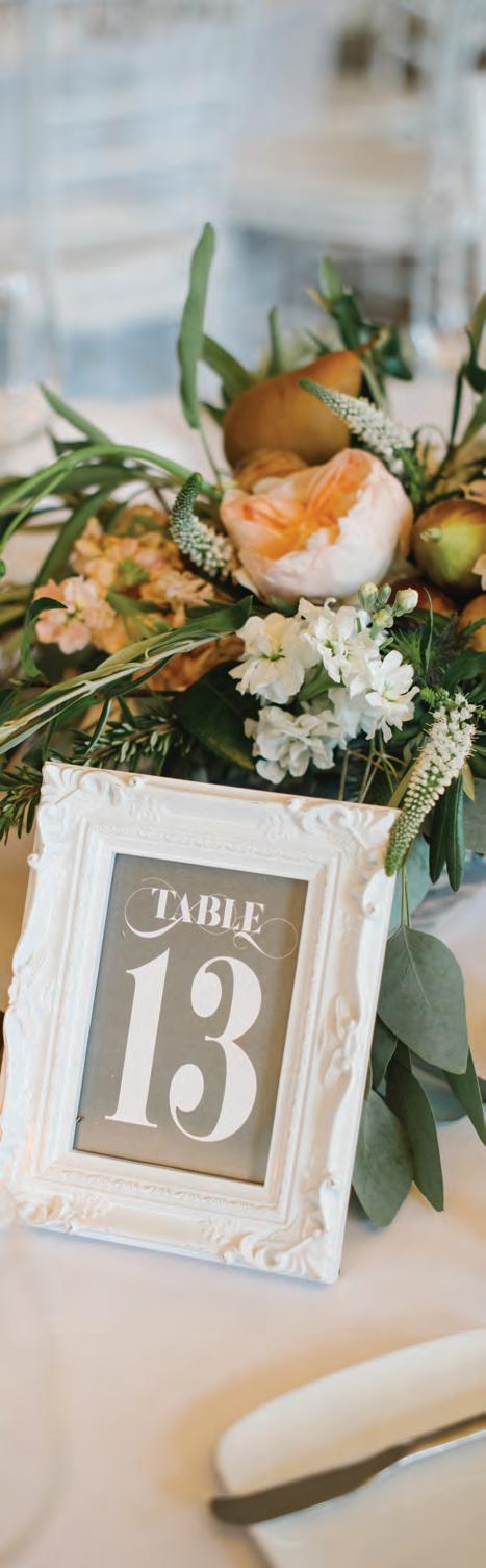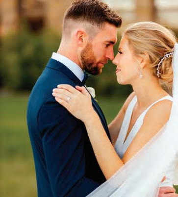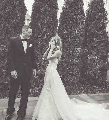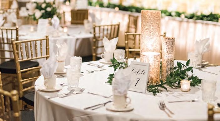 and Eric invited them to share the first dance to “Can’t Help Falling in Love with You.” The elegant neutral color palette carried through to the bridesmaids’ champagnehued dresses, set off by the groomsmen in black tuxedoes. Flickering taper candles lit up the ballroom at Hazeltine as bride and groom basked in the love of the important people in their lives. “It makes me tear up thinking back on the day,” Hailey recalls fondly.