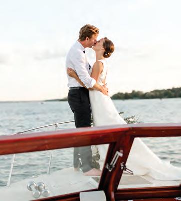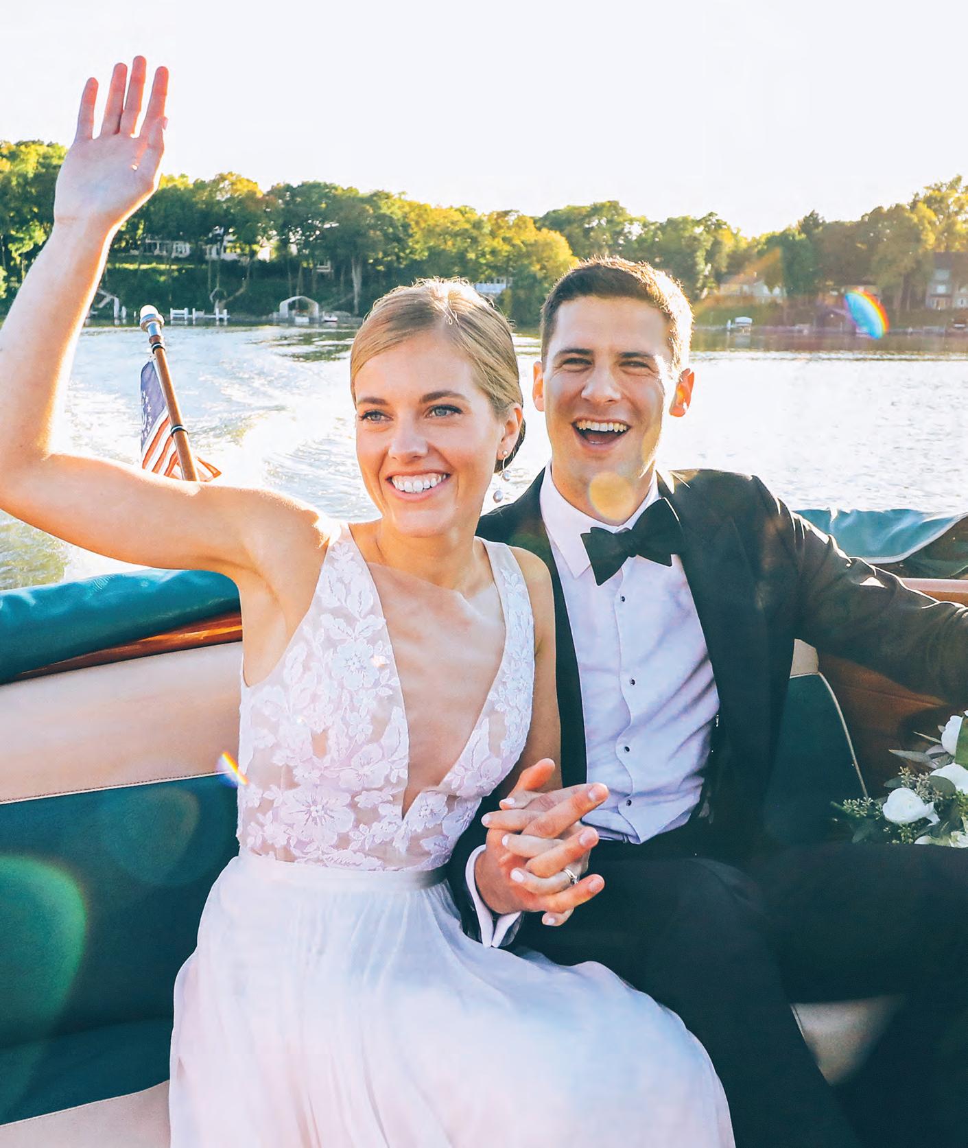 from their families. The Lafayette Club was the perfect wedding venue, as some of the couple’s best memories took place at the lake. After they read their personally written vows, guests were welcomed to the reception with an accordion playing Italian music, a nod to the DeGiulio family, while guests were treated to favors of homemade meltaway cookies (the bride’s favorite) and limoncello, among other offerings. The newlyweds toasted the day with the same glasses the bride’s grandparents used at their wedding. To finish the evening, guests danced the night away to the Riverside All-Stars.