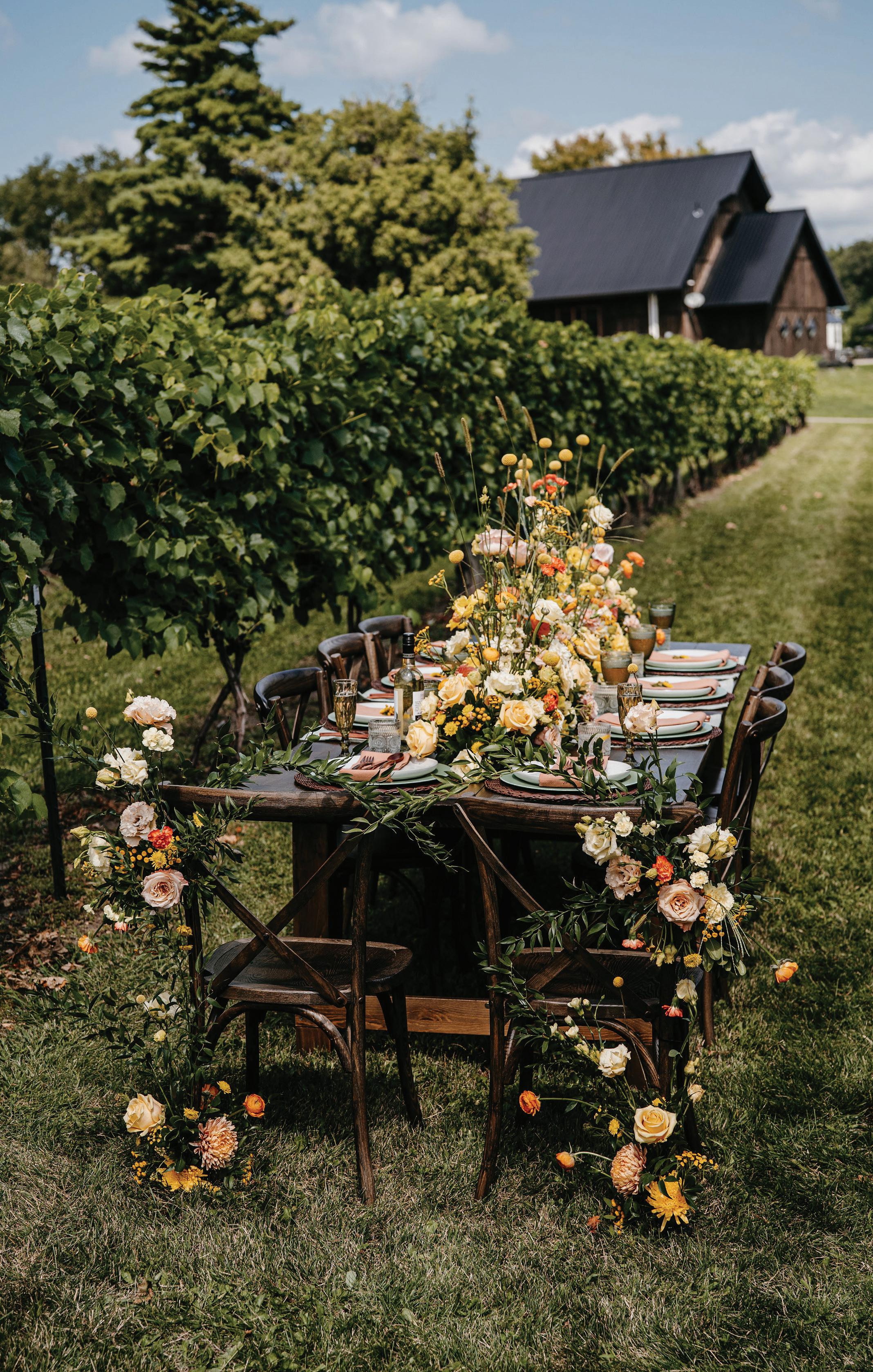 Lush floral arrangements are on tap amid the vibrant greens in the vineyards at Bold North Cellars.