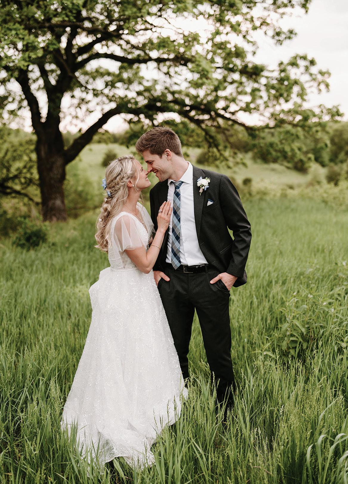 “Sam, have you met Sam?” That was how Samantha Hansen and Samuel Meidl’s mutual friend introduced them in 2018. “It is a beautiful thing how life works,” Samantha reflects: Earlier that day Samantha had attended church, and the message was named, “New Beginnings.” After their first dinner date, the pair was caught in a wild snowstorm where Sam literally swept Samantha off her feet so she wouldn’t have to traipse through the snow in her heels. “The hopeless romantic in me was instantly smitten,” she says. On a trip to Denver three years later, Sam asked Samantha to spend forever with him; a snowstorm delayed their flight home leading to a five-