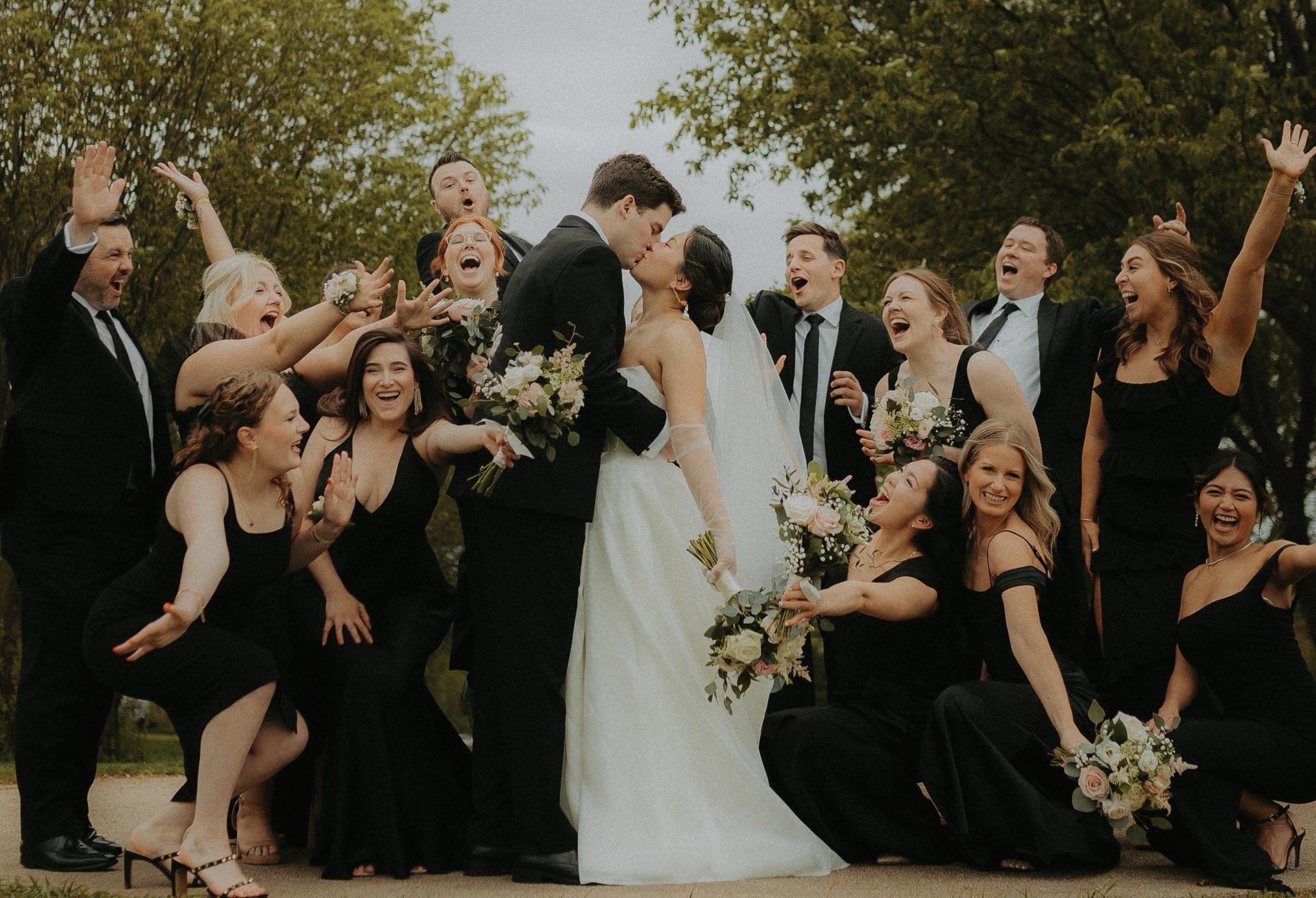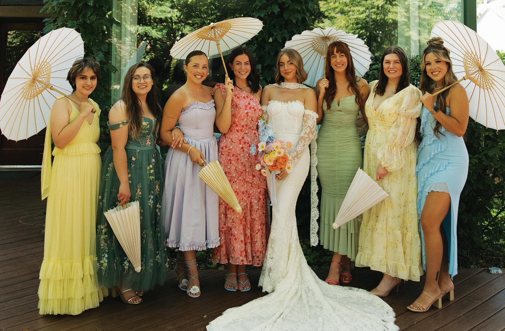 Bridal Attire: CHOSEN BY KYHA (@chosenbykyha) from BRIDE KC (@bride.kc) Bridesmaid Attire: STAUD (@staud.clothing); V. CHAPMAN (@vchapmanstudio); AZAZIE (@azazieofficial); LULUS (@lulusweddings)