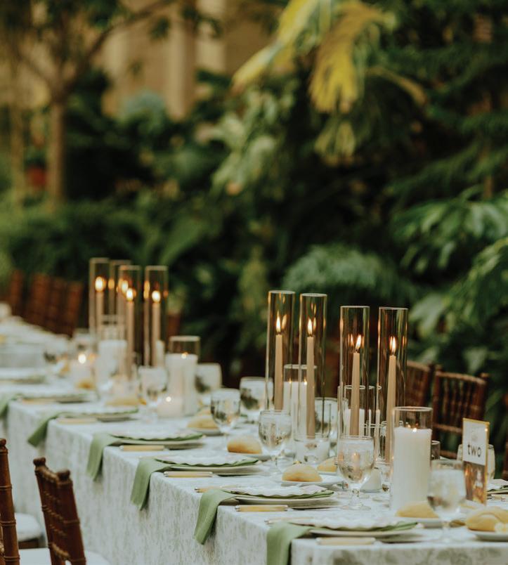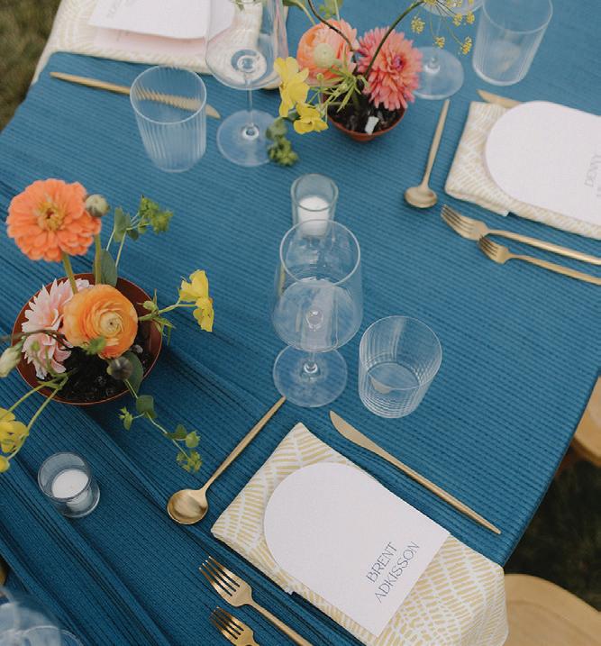 These pages are brimming with inspiration, from the latest in fashion news (page 19) and bold color palettes (page 26) to venues we love (page 24) and beautiful real weddings (page 65). A heads-up: “Plated to Perfection” (page 40) will make you hungry, featuring three mouthwatering menus paired with three gorgeous tablescapes. We are so proud of this issue and very excited to share it with all of you.