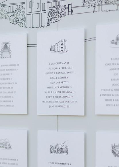 If you’re looking to add a storytelling element to your day, spark your creativity with this 8-foot installation made by Nicole Reher Creative and The Wallflower Omaha. Newlyweds showcased custom illustrations, by Laura Sfiat, of meaningful locations as table numbers, beautifully highlighting their love journey.