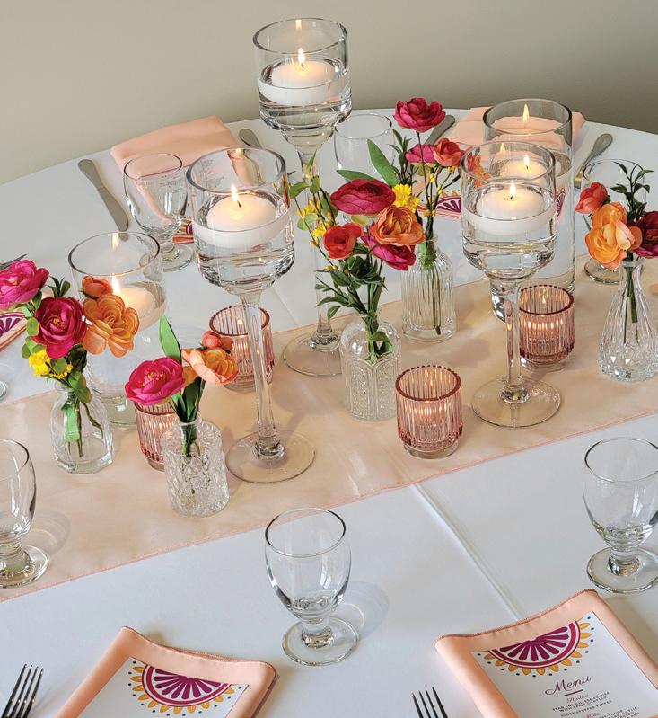 A bright, cheery color palette was on full display for Nebraska Wedding Day ’s Best of 2024 awards at The Fountains Ballroom. Planned and designed by Rachel J. Events, the inspiration behind the event was the artist Henri Matisse. Vibrant hues and bold prints were effortlessly complemented by lush florals and lively patterns. Guests were welcomed with Aperol spritzes and delicious food. The joyous theme was enhanced with artistic details like custom installations, unique linens, live music and, of course, everyone’s playful attire.