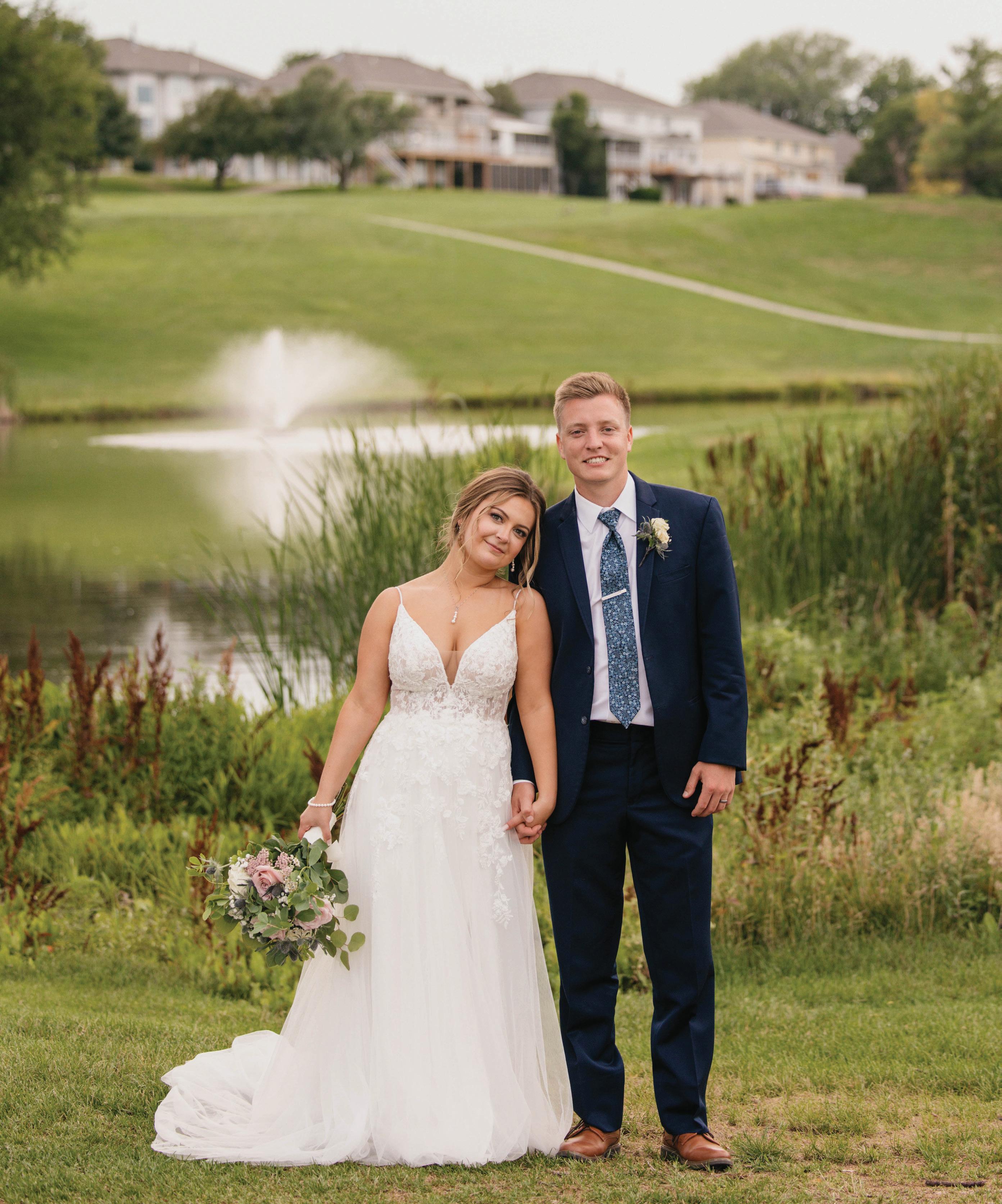 Bridal Attire: RITA VINIERIS (@ritavinieris) from FOR THE ONE BRIDAL (@fortheonebridal) Bridesmaid Attire: BIRDY GREY (@birdygrey) Cake & Desserts: WILDFLOWER PASTRIES (@wildflowerpastries) Florals: 402 FLORAL (@402_floral) Groom & Groomsmen Attire: JOS. A. BANK @josabank) Hair: LINDSAY KARELLA (@lmk.hari) Music & DJ: DJ SWIFT (@official_djswift) Officiant: DUSTIN SCHLEDEWITZ (@dustinschledewitz) Photography: TRIN JENSEN (@trin_jensen) Rings: NEBRASKA DIAMOND (@ne_diamond) Signage: NICOLE REHER CREATIVE (@nicole.reher.creative) Stationery: MINTED (@mintedweddings) Venue: A VIEW WEST SHORES (@aviewvenues) Videography: GLENWOOD WEDDINGS (@glenwoodweddings)