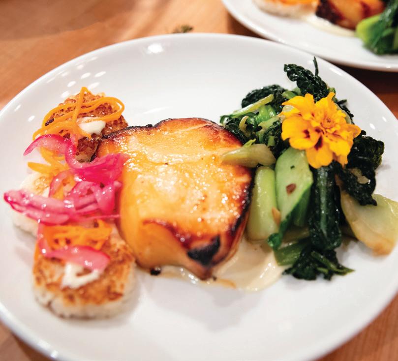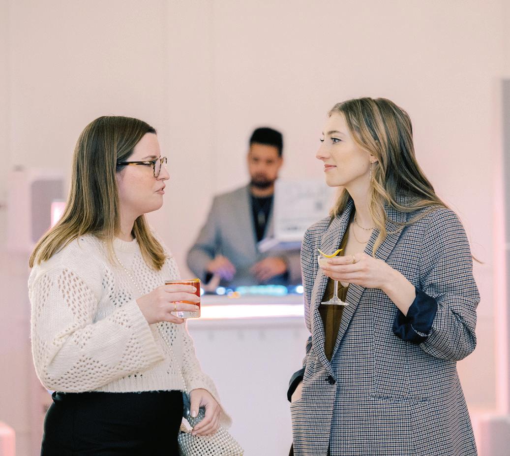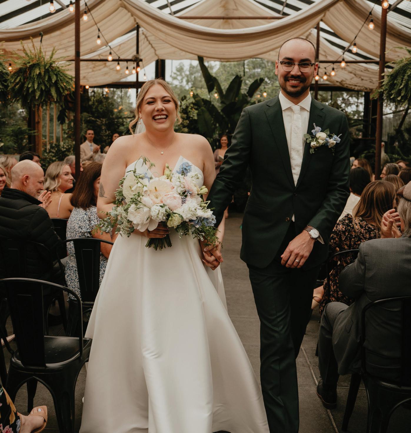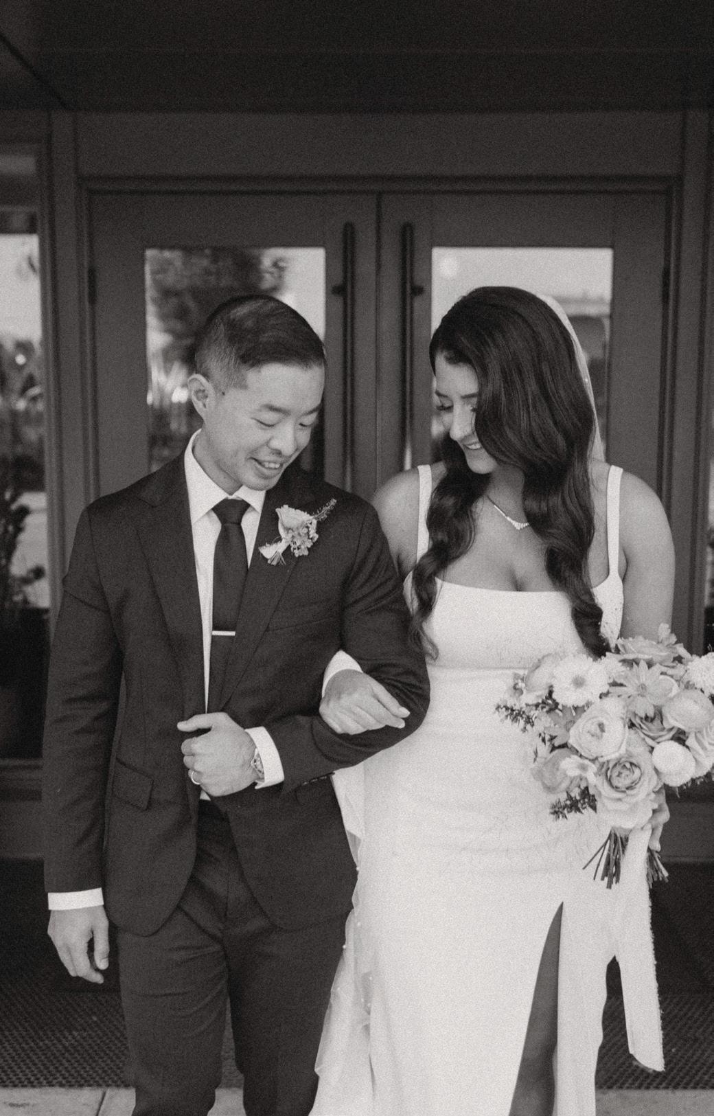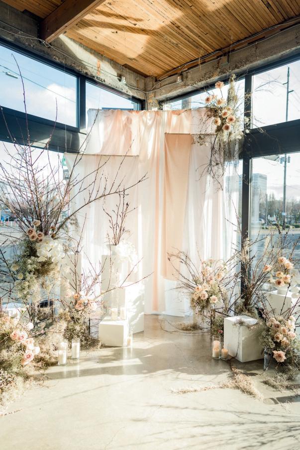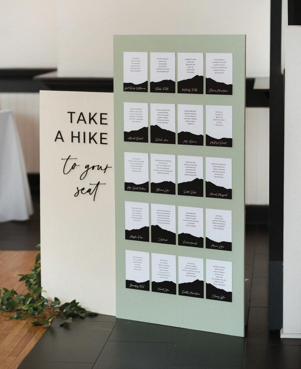 Just across the river from downtown Portland, Lindsey Wilson and Brian Ki tied the knot at The Evergreen. The groom had tears in his eyes as his bride joined him at the altar, which was adorned with a wide variety of potted plants—the mismatched greenery providing an organic feel against the ceremony space. Sunlight reflected off the shimmering champagne-colored bridesmaid dresses and beamed through the windows on either side of the couple as they said their vows. The unique reception design was largely centered on cultivating a memorable guest experience with a delicious donut bar, creative drink displays and a lineup of hourly surprise signature cocktails—each drink inspired by a special memory in their love story. Guests were invited to “Take a hike” to their seats with a themed seating chart that featured silhouettes of mountain ranges against a chic sage-green backdrop. Foregoing traditional numbers, tables were named after a few of the bride and groom’s favorite hiking spots. Tablescapes were simple and refined, with blush pink napkins to contrast the beautiful greenery and candlelight that flowed down the length of the tables. Following their dance to “Motion” by Emotional Oranges, the first concert the couple attended together, colorful glasses were passed around to ramp up the party atmosphere, transforming their day of love and celebration into an incredibly electric night that is sure to be remembered forever. Reflecting on their personalityfilled event, Lindsey shares, “Every part of the celebration felt intentional and full of heart, and getting to share those moments with all our friends and family made it truly unforgettable.” —Kaitlyn Meehan