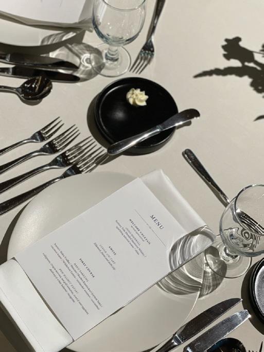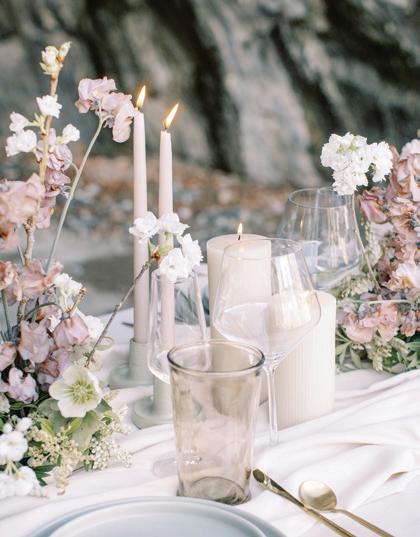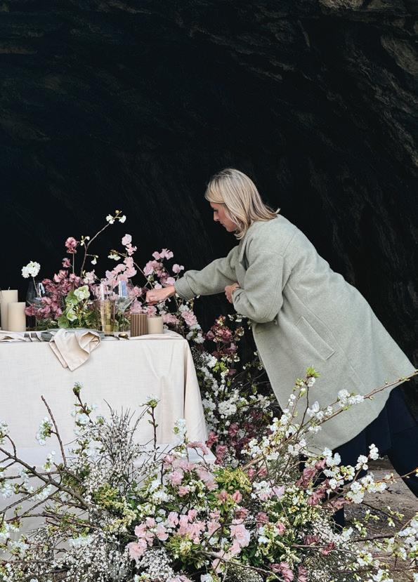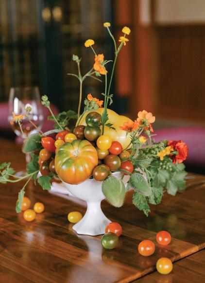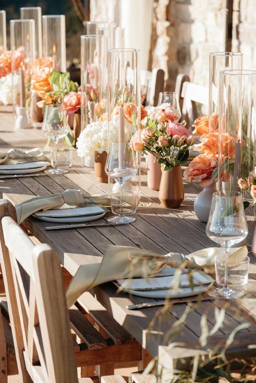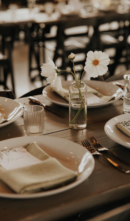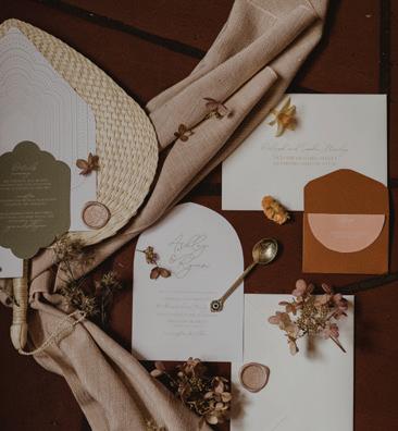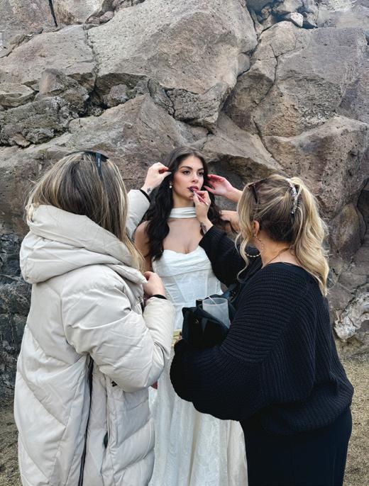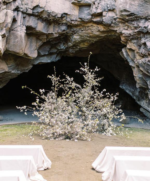 There is nothing quite like fall in the Pacific Northwest. The crisp air, the festive feeling and, of course, the colors. Wanting to capture that very essence, Renee Walker of Beaneth the Pines created an amazing scene for love to flourish. The design was inspired by the color palette of an Oregon autumn, including deep, rich tones represented in the florals, drinks and makeup, which then contrasted with the warm wood of The Inn at Diamond Woods. The reallife couple met when Clarae was reading for a role in an indie movie, and Ollie was already cast as the lead. They started filming two years later in October 2023. Clarae notes that this time of year is so special to them as a couple, “You know that song ‘We Fell in Love in October?’ That’s why I love fall. That is literally us.”