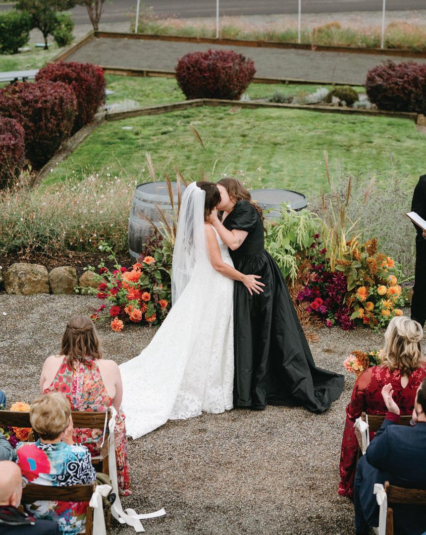 Catering: REX HILL (ceremony; @rexhillwines); WHITE PEPPER (reception; @whitepepperpdx) Florals: SONGBIRD FLORISTRY (ceremony; @songbirdfloristry) Hair & Makeup: GODDESS GLAMOUR (@goddessglamour_pnw)