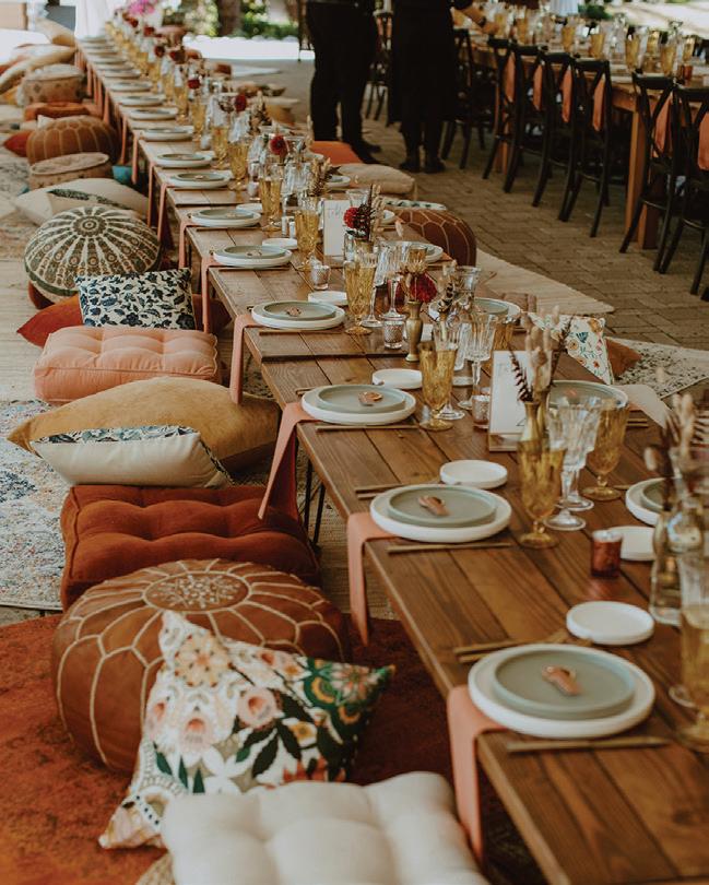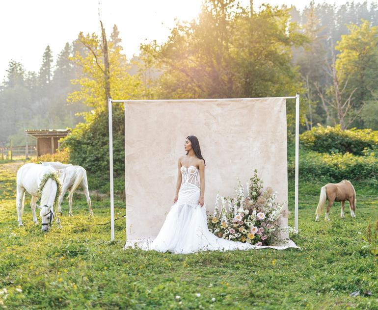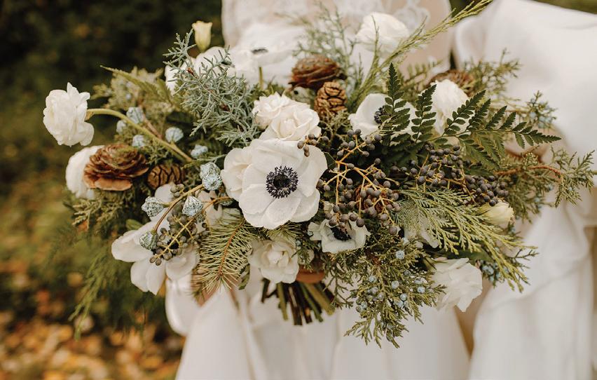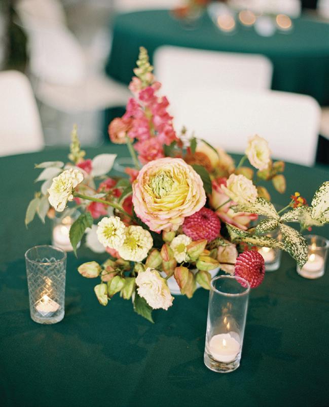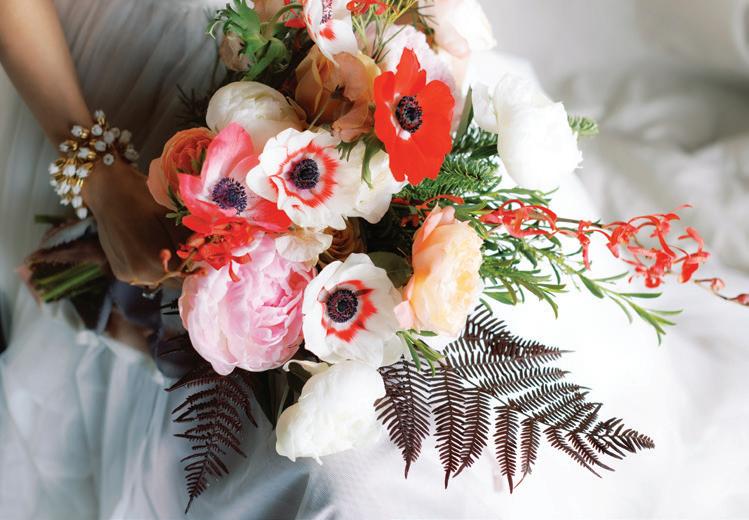 This issue is also filled with inspiration and beauty, from a romantic, vibrant forest design at the incredible Alderbrook Resort & Spa (page 58) to beautiful cakes creatively displayed in a field of flowers (page 66). Find cool ideas for bright color palettes, ceremony designs and sustainable ways to incorporate florals (page 26). And for a dreamy dollop of pure romance, turn to our real-wedding gallery for more ideas on creative details and décor (page 95).