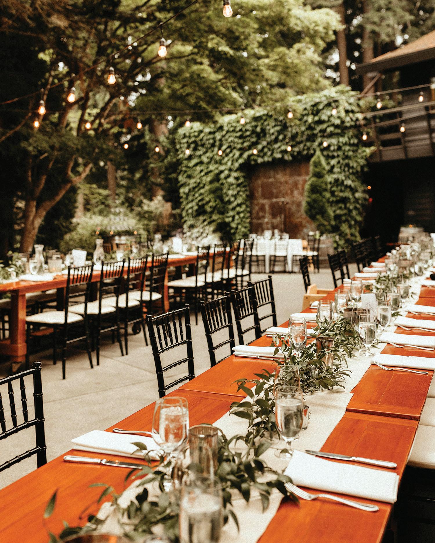 Daniel and Jake envisioned one grand dining table for all 150 of their guests. Ultimately, 19 tables
