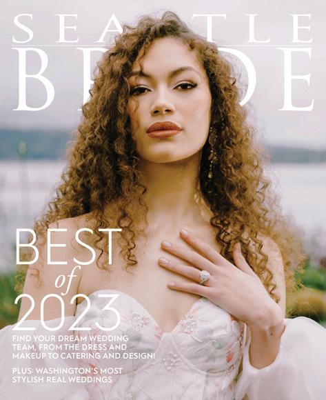 for all the winners and nominees in Seattle Bride’s Best of 2023! I love producing this issue because it puts a list of the top wedding vendors at your fingertips, an invaluable resource when planning your wedding. This curated list is selected by couples and the industry through a monthlong online voting process; it includes wedding planners, event designers, florists, photographers, caterers, dress designers, venues, DJs and others. Whether it’s a custom-designed wedding gown or a six-course gourmet dinner you seek, these visionaries will bring your dream to life. Find your perfect match from the Best of 2023 list (page 49), which features Washington’s top wedding professionals.