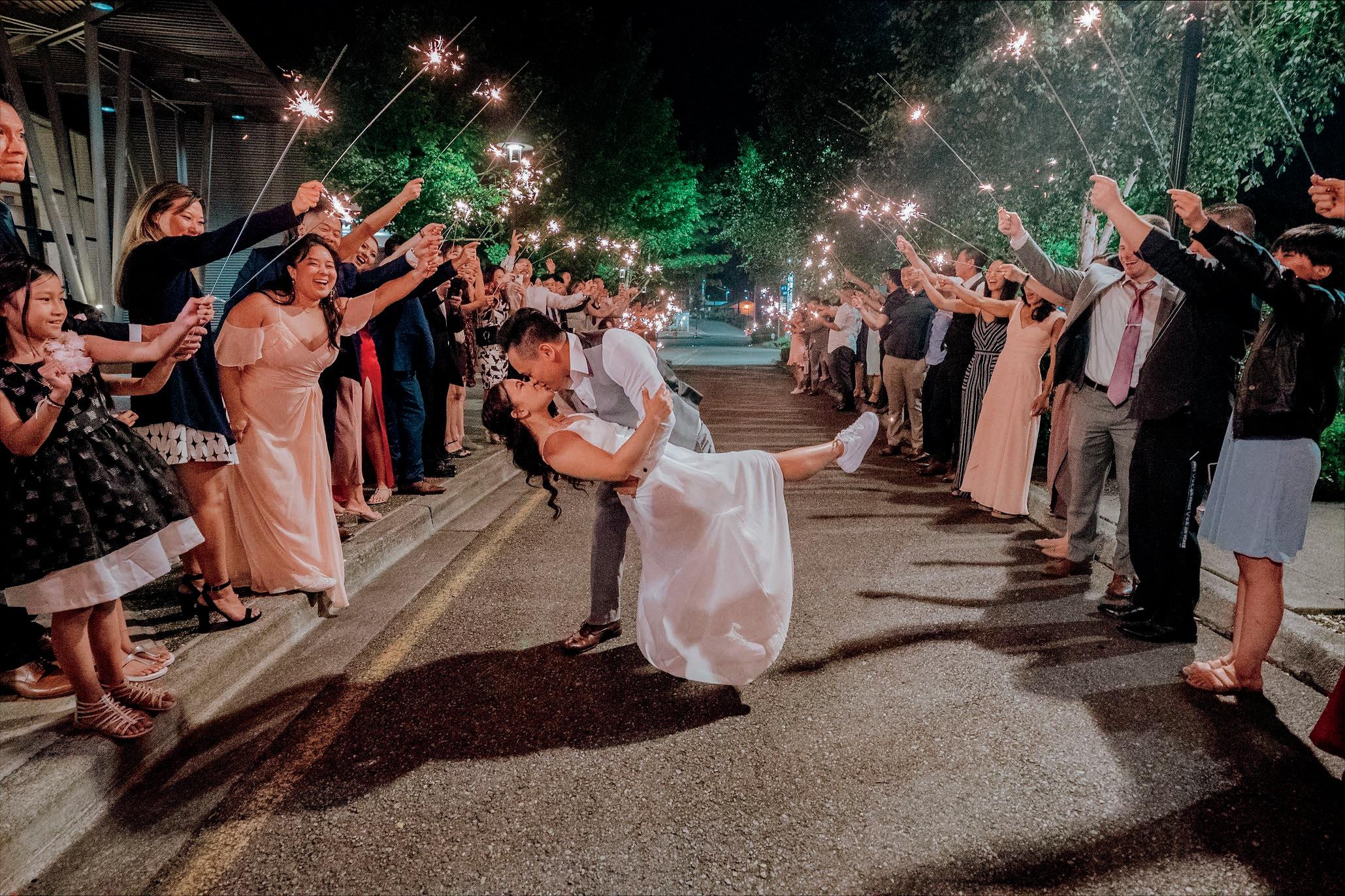 As Mahdieh Lashgari walked down the aisle to enchanting music performed in person by the Seattle String Quartet, guests were transported into a world of rich Persian culture and beauty. The air was filled with excitement as the bride, clad in a full-length veil handmade by her mother, met her groom, Armand Mauro, and the romantic melody “Soltane Ghalbha” played. The ceremony at the luxurious Fairmont Olympic Hotel took place in a floral heaven, with abundant white and blush blooms adorning every inch of the space. As guests took their seats, they were welcomed by arrangements lining the aisles and leading to a statement floral arch at the altar. Following the ceremony, Mahdieh and Armand made a grand entrance into the reception, accompanied by the Jafra Dabke Team; the dance troupe performed a traditional Palestinian dabke with drums, which set the tone for the festivities to come. As the anticipated act of cake cutting approached, the bride’s and groom’s loved ones prepared for another Persian tradition, the raghseh chagoo, which translates to “knife dance,’ a tradition that is performed before the cake cutting. In this custom, the newlyweds must “earn” the right to cut their cake by offering money to the dancers, who have the knife. Once Mahdieh and Armand successfully earned the knife, the celebration truly began. The dance floor came alive with energetic moves, while dollar bills decorated the space. As guests began their farewells, they were pleasantly surprised to receive saffron all the way from Iran as a favor from the bride’s grandmother. The gesture was not only a token of gratitude but also a symbol of the family’s heritage, making it a truly unique and prized gift.