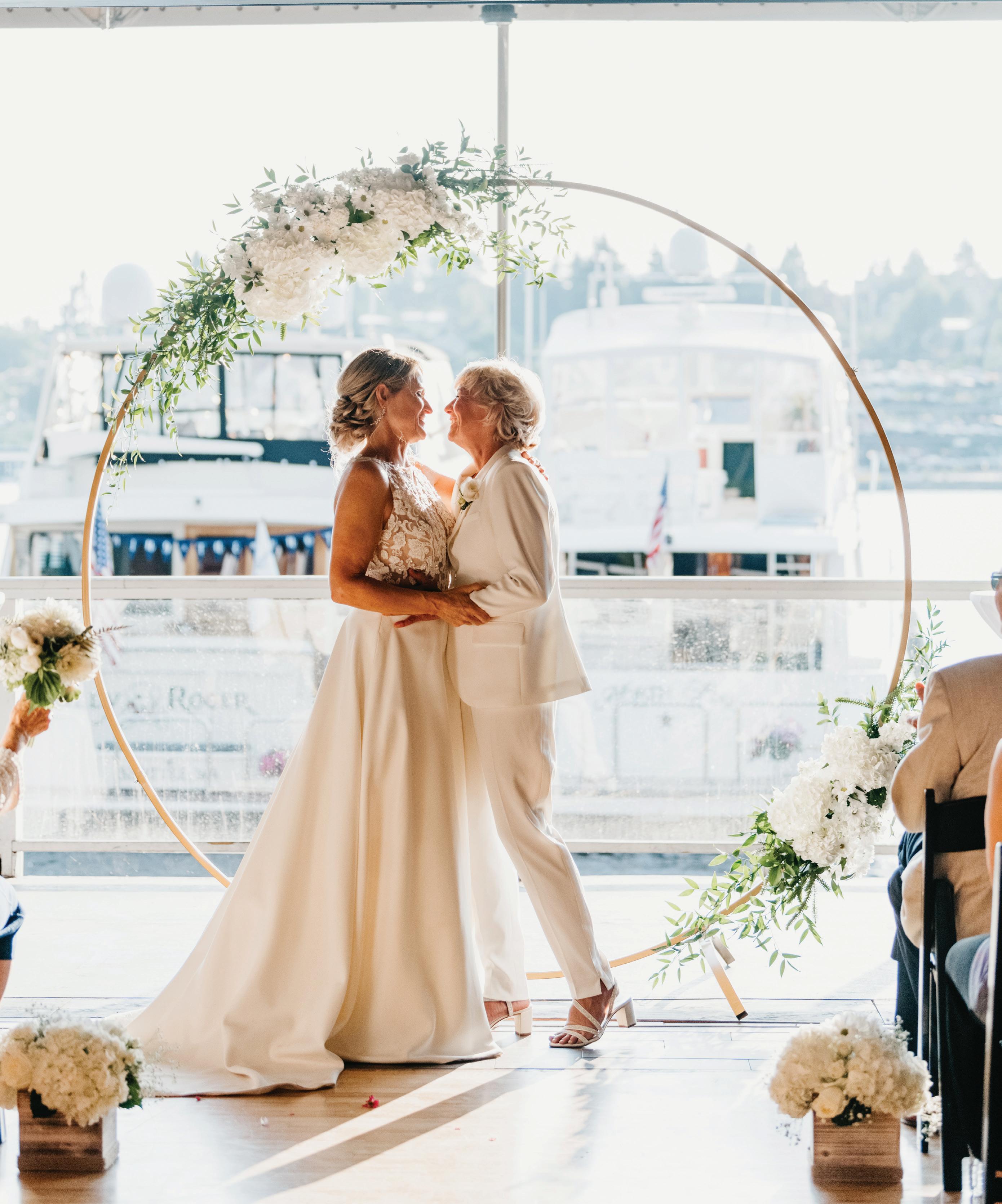 Bridal Attire: VINTAGE VERA WANG (dress; @verawangebride), LOEFFLER RANDALL (shoes; @loefflerandall) Cake: LADY GREY CUSTOM CAKES (@ladygreyseattle) Catering: HERBAN FEAST (@herbanfeast) Florals: BOND IN BLOOM (@shelbybondinbloom)
