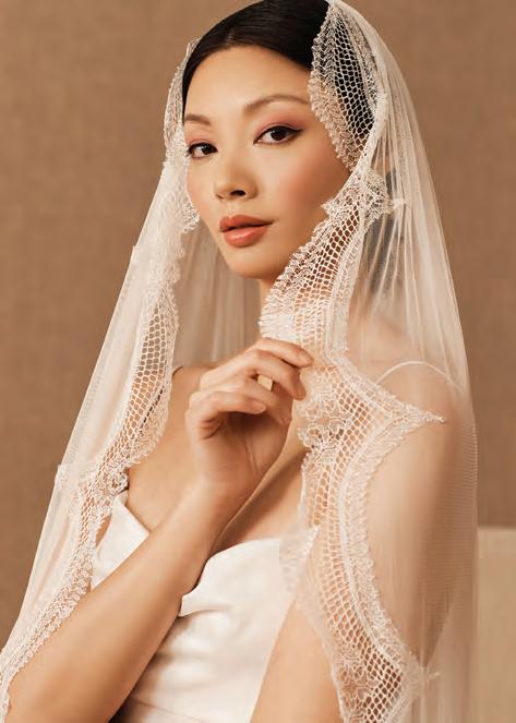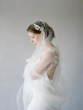 DREAMY EMBELLISHMENTS LEND ROMANCE AND WHIMSY TO THE TRADITIONAL VEIL.