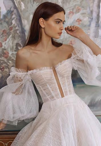 courtesy of Nyanza Bridal (nyanzabridal.com). This Renaissance-inspired gown is an ode to ethereal decadence, with its statement-making sleeves giving new meaning to the phrase “arm candy.”