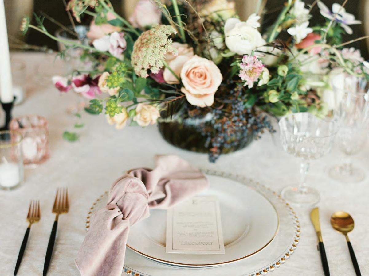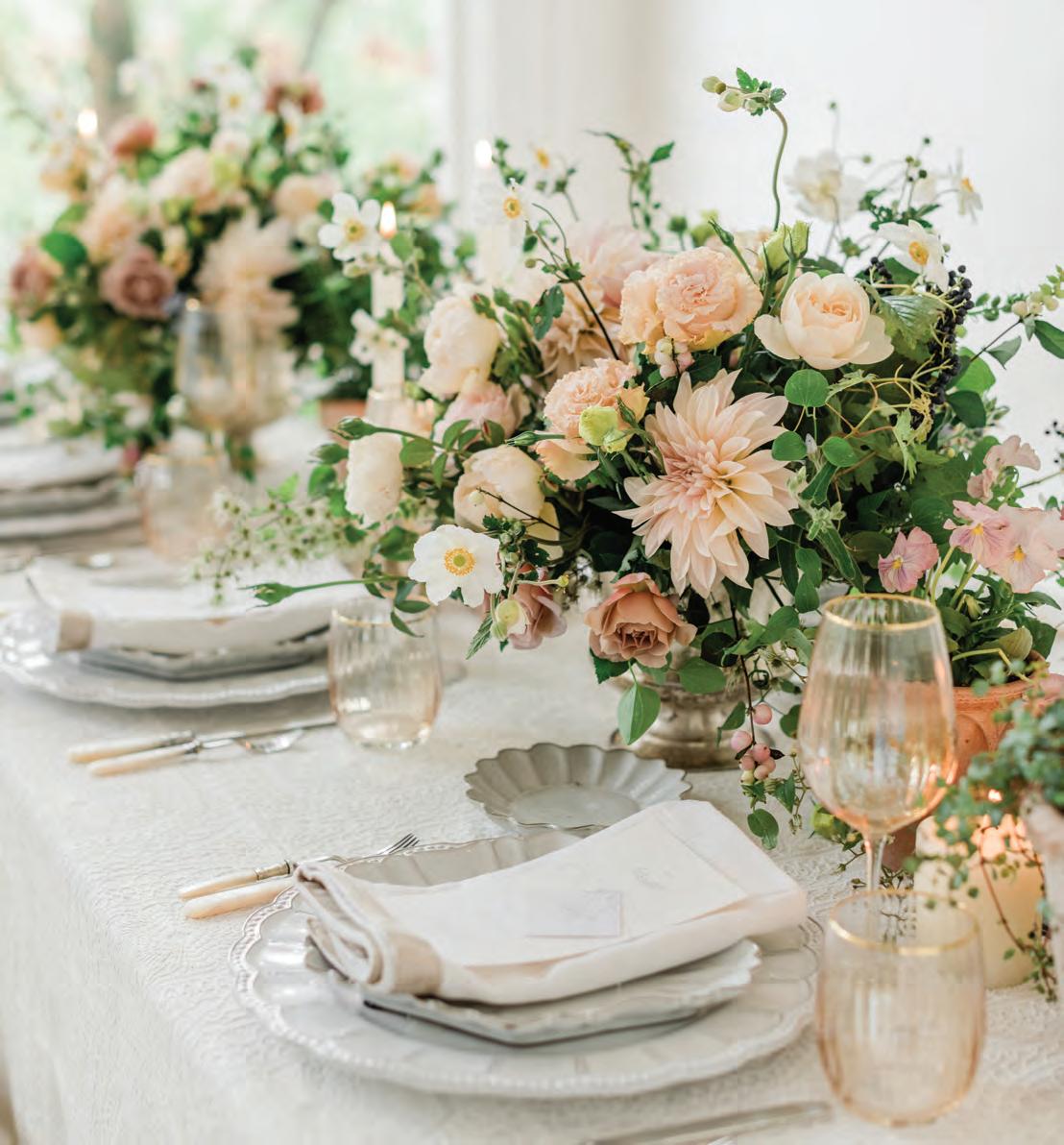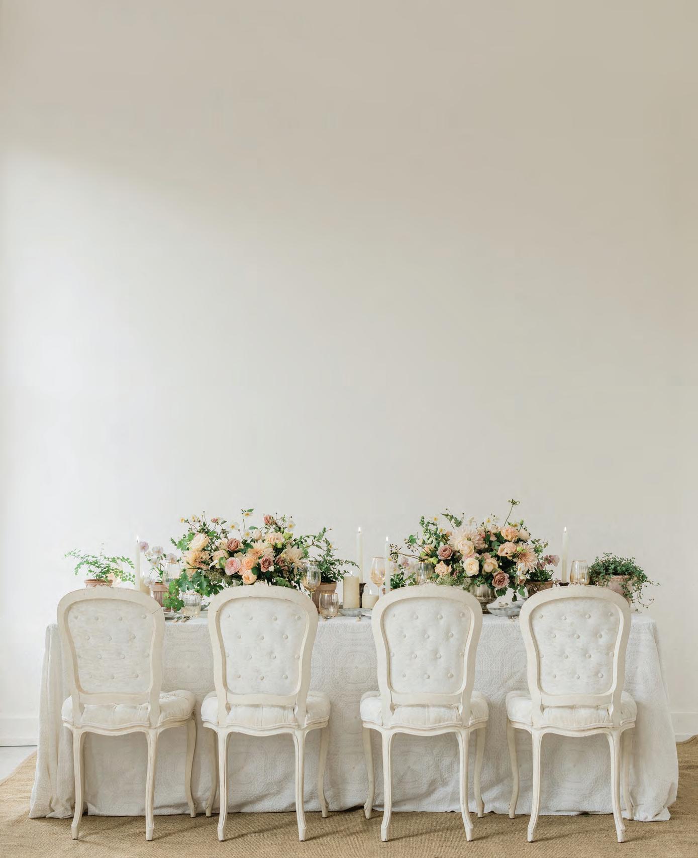 Fresh botanic arrangements in the softest shades and classic luxe elements make the perfect pairing for a modern celebration that’s timeless.