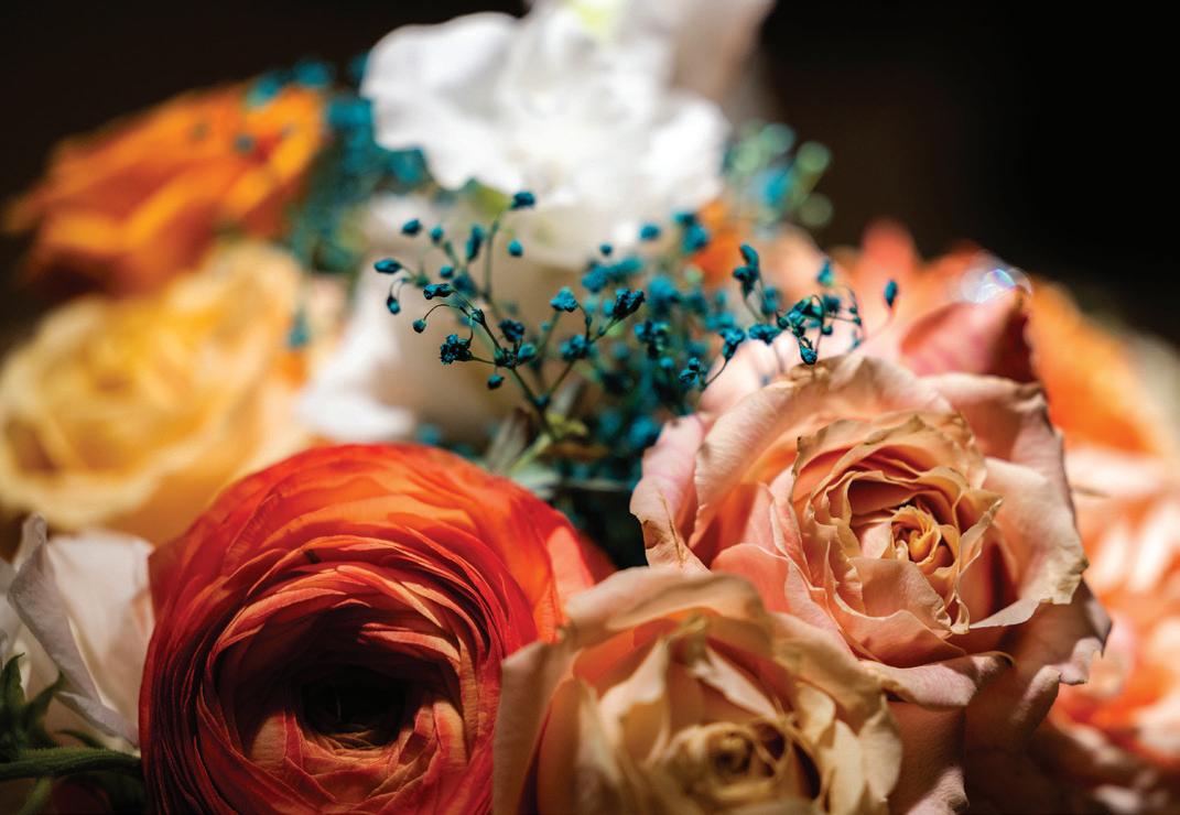 The trend-forward style doesn’t end there: Despite it being a rainy day, Perfect Storm Moments’ picnic-inspired design (page 80) is the epitome of casual luxury. And the real weddings (page 113) in this issue are a divine collection of lovely palettes and dreamy settings. Plus, we have gathered ideas for engagement photos (page 48), guest experiences (page 44), party playlists (page 34), beauty tips (page 38) and more.