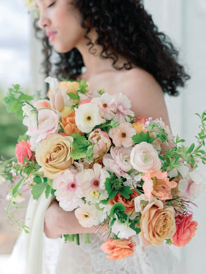 Glorious greenery and colorful florals create a setting where romance blooms.