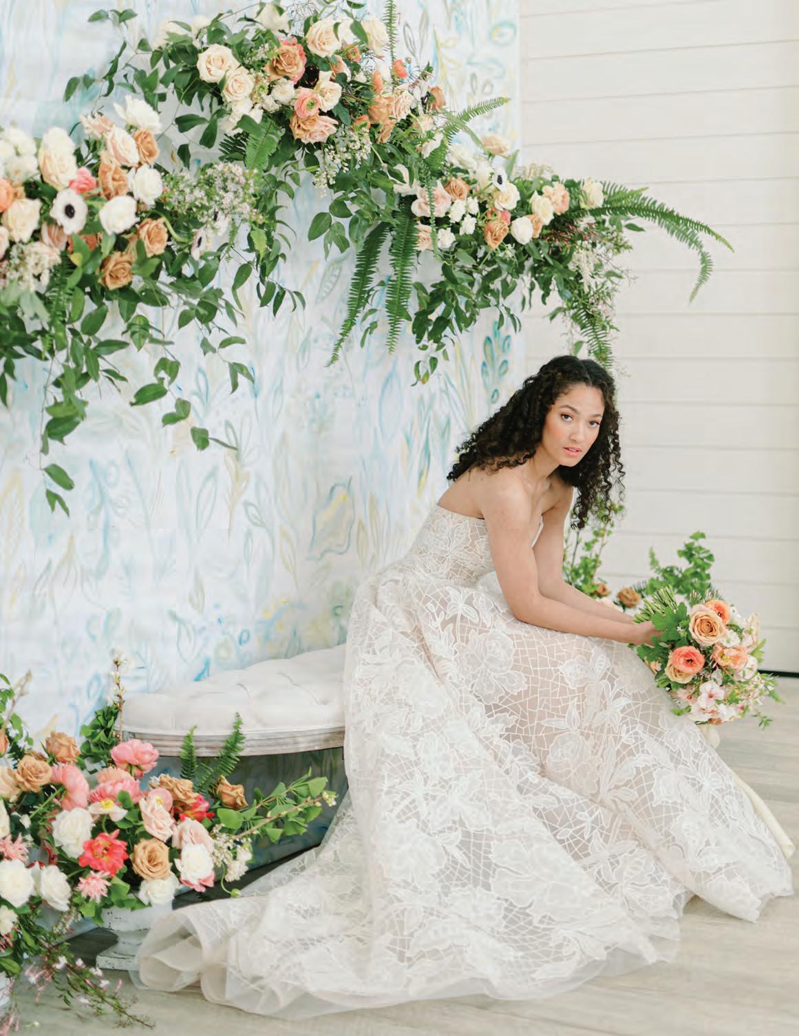 PHOTOS COURTESY OF: (TOP) BE INSPIRED SALON. (MIDDLE) PURE JOY INK. (BOTTOM) WHITE DRESS BRIDAL BOUTIQUE, PHOTO