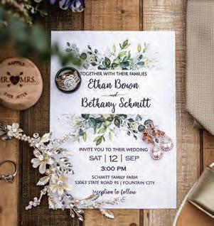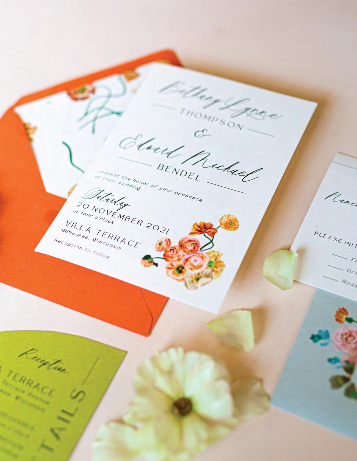 PHOTOS COURTESY OF: (ABOVE) DAVE STREMIKIS PHOTOGRAPHY. (MIDDLE) KATY SCHUELE SCANLAN, PHOTO BY: SEAN COOK WEDDINGS. (BELOW) BAY VIEW PRINTING CO., PHOTO BY: PAPER ANTLER. (RIGHT) FROMAGINATION.