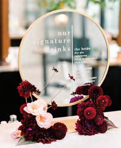 This cozy space by Andrea VandeBerg and Sarah Sarbacker, the duo behind Madisonbased Cherry Blossom Events, is the quintessential intimate event, with moody blooms adorning a fireside table space and custommonogrammed wall art. At the whiskey tasting station, an inspiring addition to this celebration, you and your guests can sip as you take in the serene waterfront views at the Edgewater.