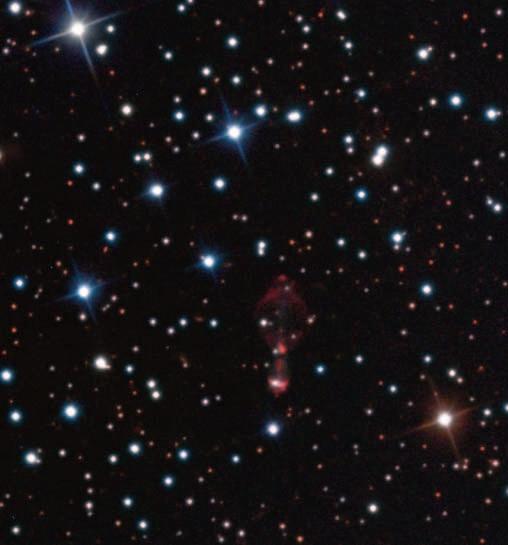 places and things, and when I saw this photograph of the swing-riders flying and falling against the sky, I wanted to imagine a connection between the swing ride and the glowing oblong sulphur cloud of the Calabash Nebula.”