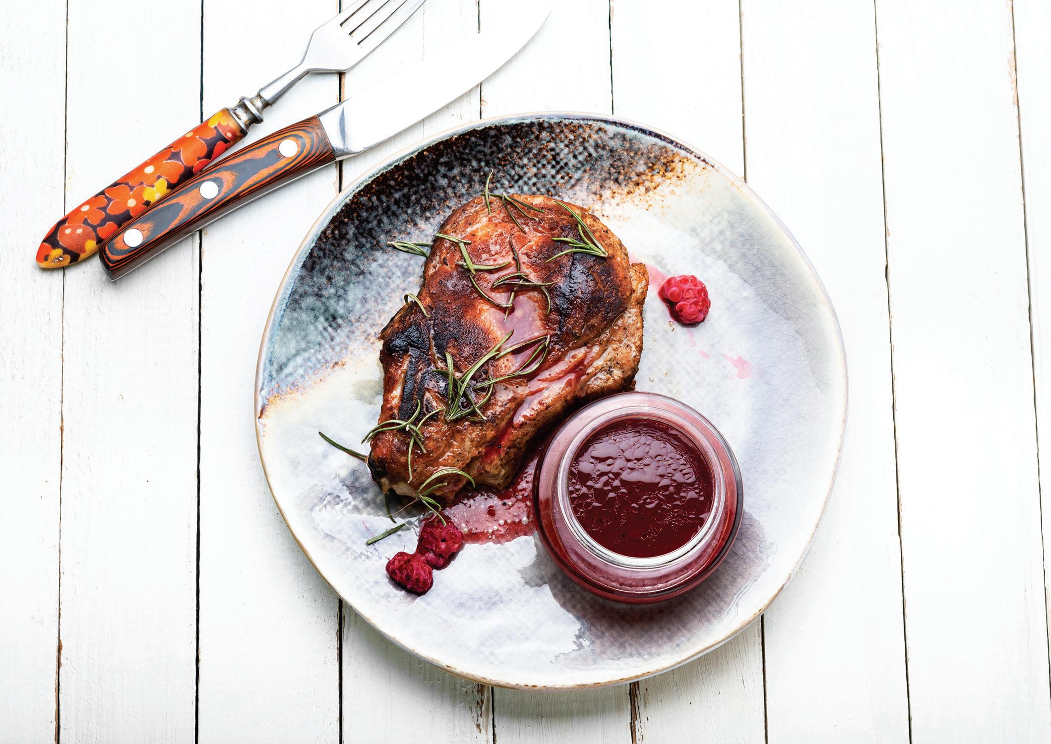 Preheat oven to 350˚F. To prepare pork chops: Season pork chops with pepper and orange zest.
