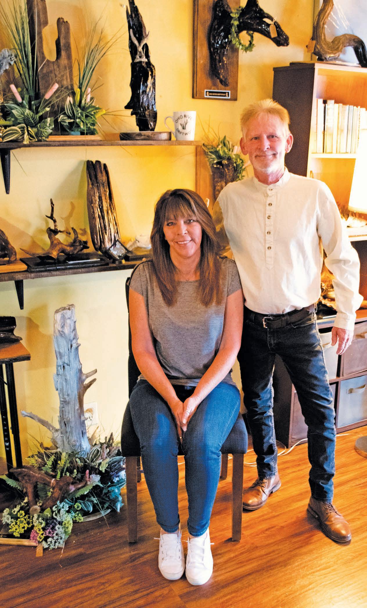 “When we say we do driftwood sculptures, people think we’re making horses, owls, things like that, but we’re keeping it natural,” Denise says. “I don’t know how many people have stopped and said they would have never thought to pick up an old piece of driftwood and stain it, so hopefully we’re inspiring people.”