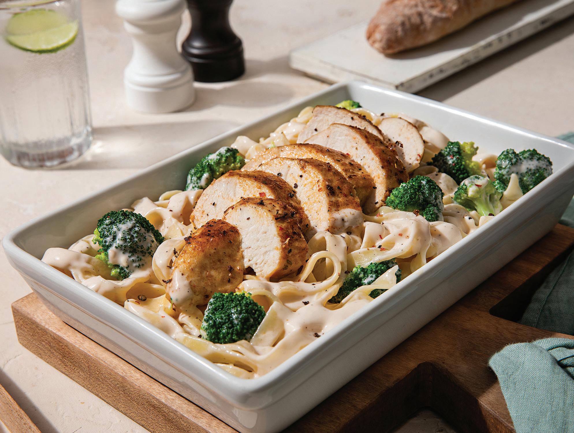 In separate pan, cook fettuccine according to package instructions. Serve chicken, broccoli and sauce over hot fettuccine and sprinkle grated Parmesan cheese on top, if desired.