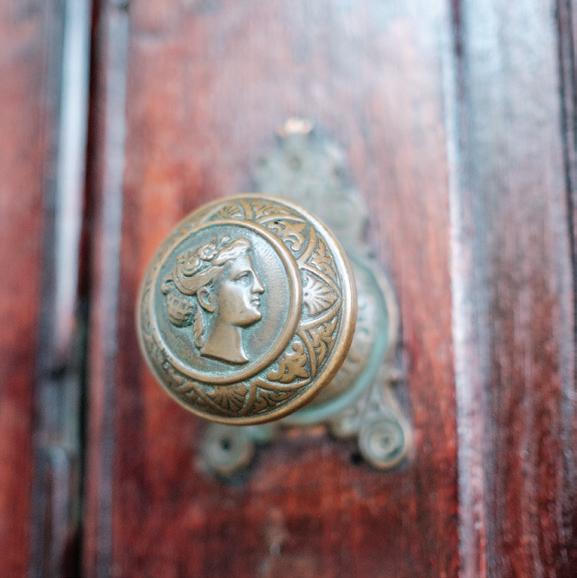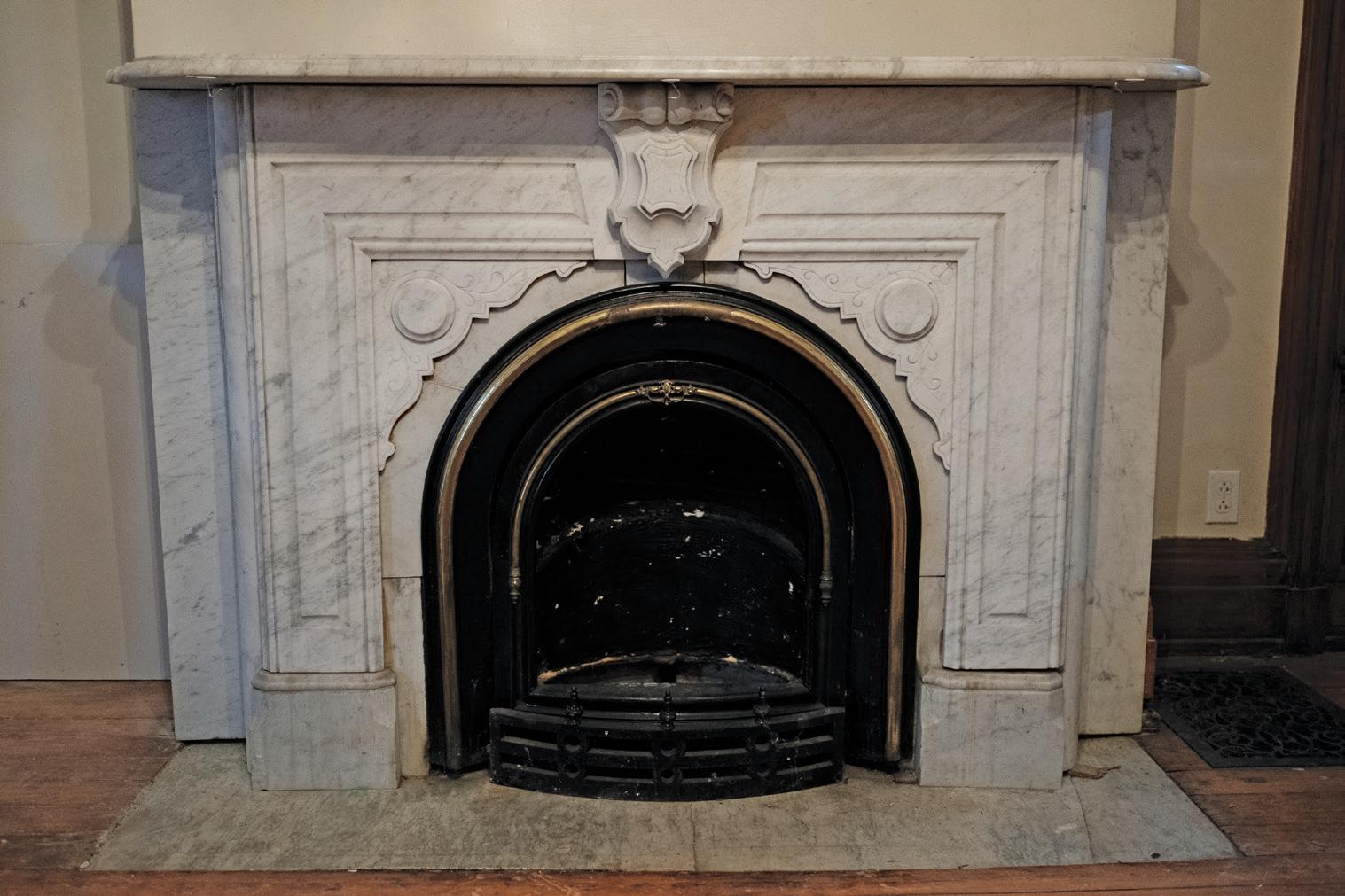 In addition to the tower, the house also boasts a number of fireplaces (two marble ones that were imported from Italy), a mantle painted to look like marble, fretwork molding and many other intricate details. It is made up of five bedrooms, four bathrooms, two kitchens (one being the original placement with service doors and stairwell), a parlor, several living spaces — equaling a total of 19 rooms — and porch.