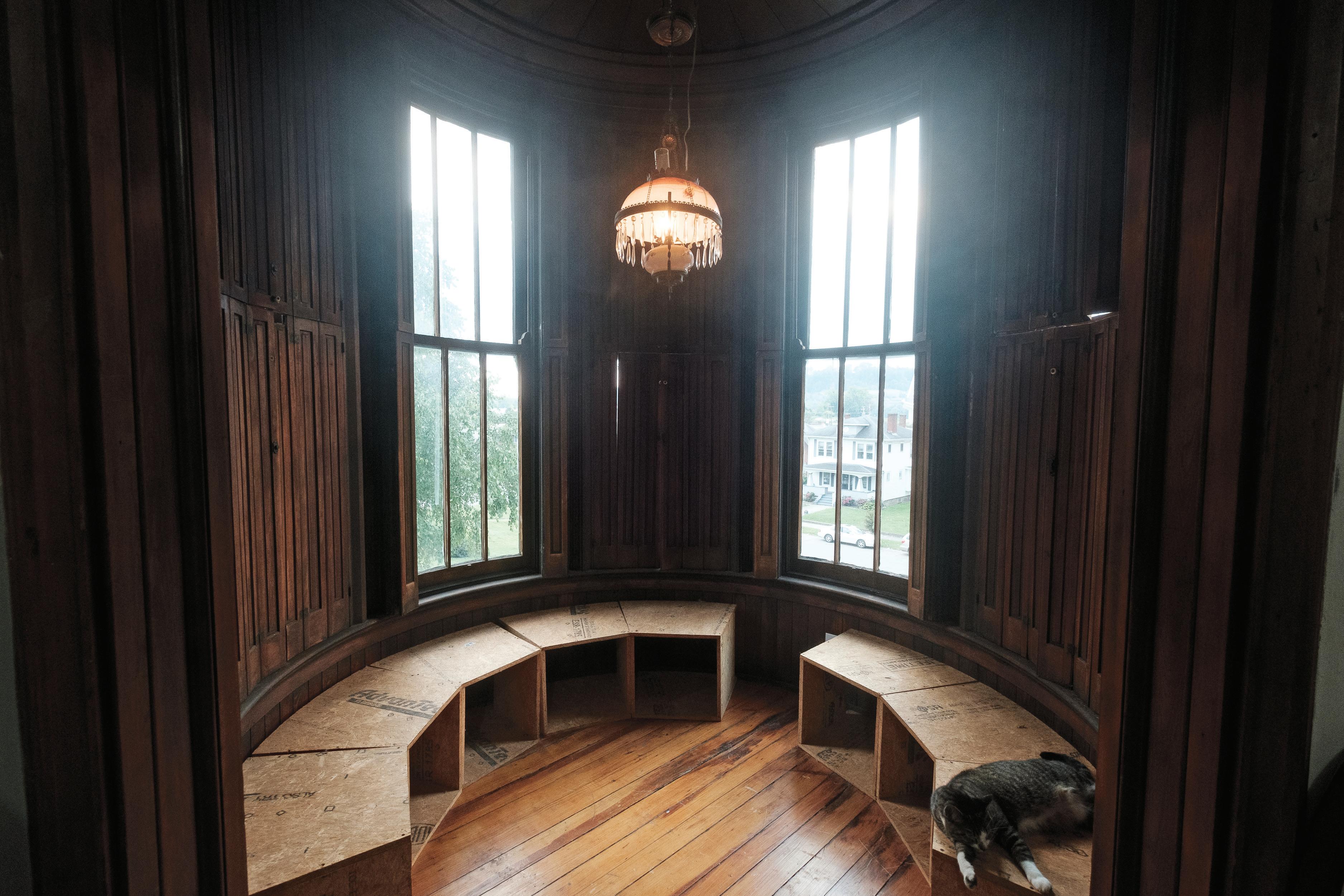 Shelby was struck by the 11-foot tall doors “They are completely original as far as we know,” Jake said), 12-foot high ceilings, many windows and of course, the tower. “When will we ever have a chance to buy a mini mansion, in Ironton, at this price,” she thought.