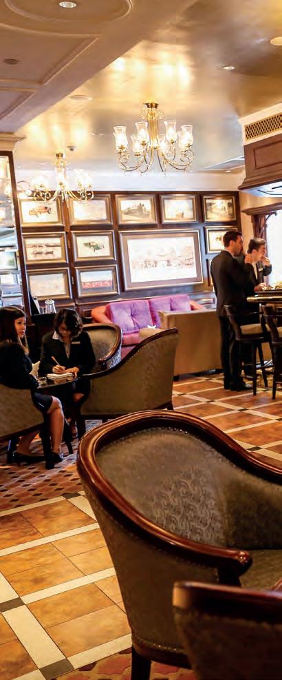 windowpanes on the exterior wall that create a more authentic pub feel than the average hotel bar in Yangon. The seating is comfortable, with plush chairs and couches arranged in a café style around small circular tables, while the atmosphere is relaxed, with a pool table in the corner and music that’s quiet enough for conversation.