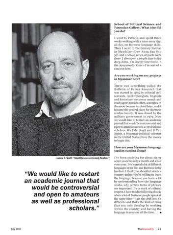 CONTRIBUTORS to this issue: Kyaw Zwa Moe, Nyein Nyein; Aye Chan Myate; Thit Nay Moe; May Sitt Paing; Kyaw Hsu Mon; Samantha Michaels; Zarni Mann; Seamus Martov; Virginia Henderson; Lucas Stewart; Jerry Peerson; Kyaw Kha; Andrew D. Kaspar; Simon Lewis; William Boot; Lin Thant, Htet Naing Zaw; Lawi Weng; Marwaan MacanMarkar.