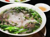 and flavorful, without any cloying aftertaste of MSG. The proprietor explains that the stock is simmered for over 12 hours to get the right depth of flavor. It is served as it is in Vietnam—steaming hot with a large plate of cilantro, basil, limes and beansprouts.