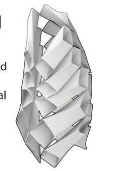 Diagonal ridges and skin of the sponge generates a series of still zones to minimise wind turbulence;
