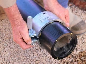 The Plastic Pipe Industry Association’s guideline for electrofusion installation includes a calculation that determines if pipe is excessively oval (left). If pipe exceeds a certain limit, re-rounding tools must be used (right).