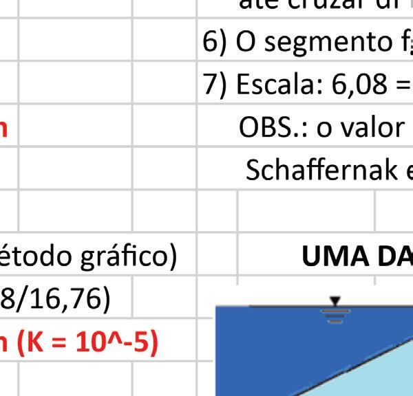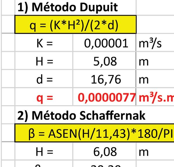 A planilha abaixo, apresenta cinco métodos para a estimativa da vazão de percolação em barragens.