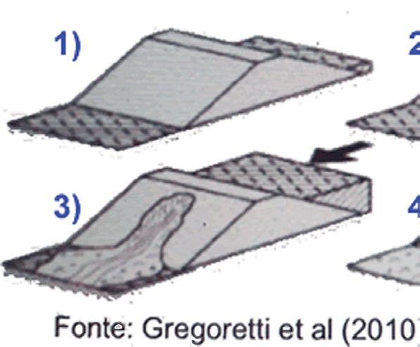 A erosão regressiva, que ocorre no interior do maciço, pode ser controlada com a construção de filtros, para interceptar a linha de saturação da água, rebaixando-a. Isso ocorre devido à maior permeabilidade do material de que é constituído o filtro. A Figura 1 mostra a sequência numérica da ação danosa da percolação em barragem de terra homogênea sem proteção.