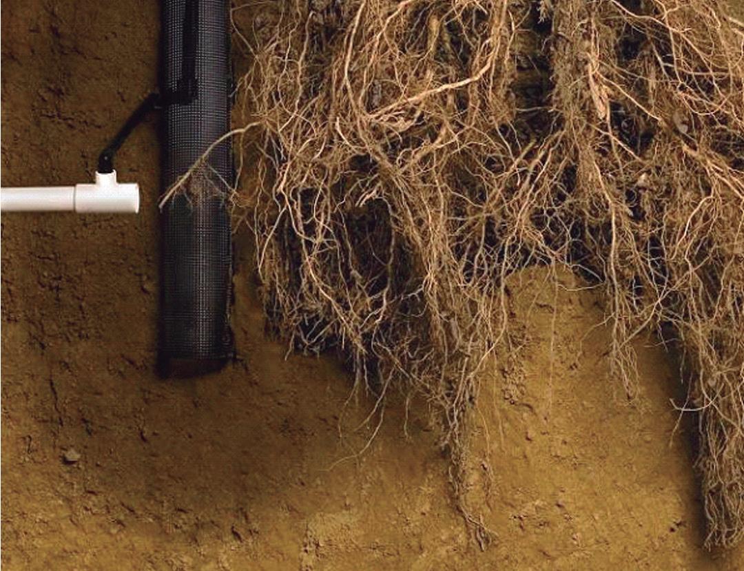 O sistema de aeração e irrigação de raízes é composto de tubo perfurado cilíndrico com um emissor autocompensado na parte superior e possui diversos tamanhos de acordo com a profundidade do sistema radicular e porte de planta.