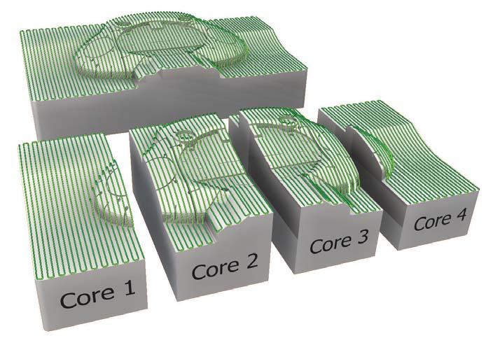 Večnitno preračunavanje je novost v CAD/CAM-u in končno omogoča izkoriščanje zmogljivosti, ki jih ponujajo že dobro uveljavljeni večjedrni računalniški sistemi. V ozadju se nekatera dela prerazporedijo na različna procesorska jedra, ki samostojno preračunavajo svoj segment.