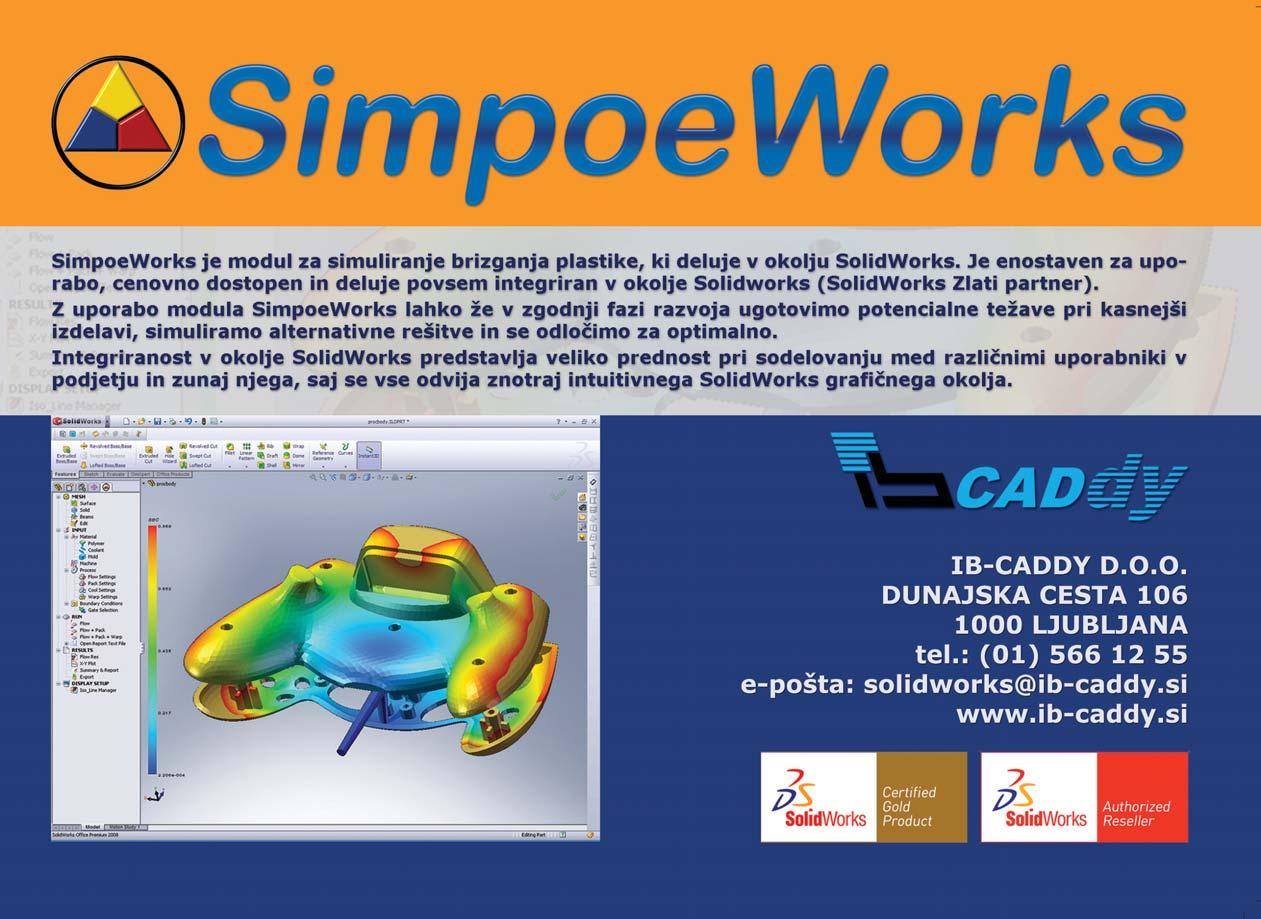Matej NovakZmanjševanje zvitosti izdelka na že obstoječem orodju za brizganje Problematika termoplastičnih izdelkov, narejenih z brizganjem, ostaja že več desetletij nespremenjena. Po izmetu so izdelki manjši in deformirani. Zadnje desetletje smo na tem področju na Tecosu naredili velik korak naprej predvsem zaradi računalniških simulacij in programskega paketa Moldflow. Simulacije brizganja so bile tako večinoma aktivno vključene že v fazi razvoja izdelka, pozneje pa so pomoč konstruktorju orodja in tehnologu na stroju.